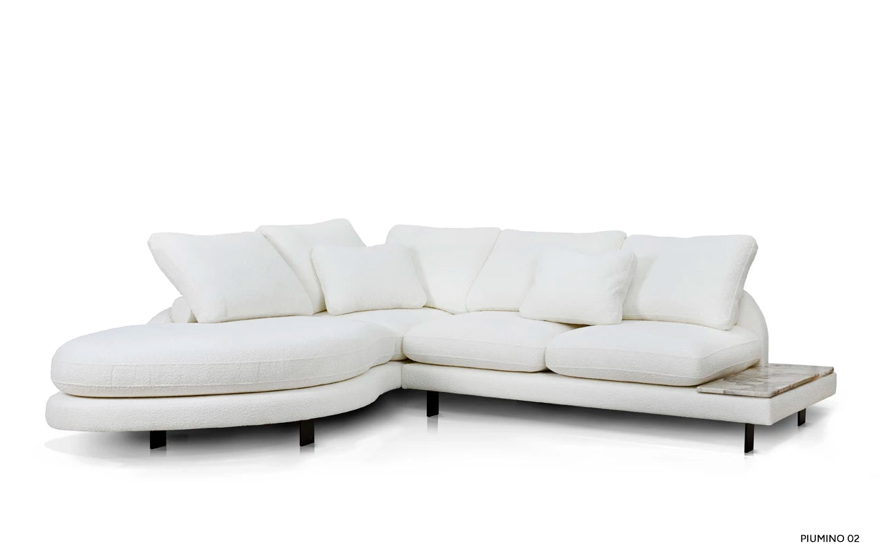 V této kolekci se modernost setkává s klasikou, a elegantní, měkké tkaniny jako bavlna, vlna, len a viskóza byly spojeny s přírodními materiály jako žula, mramor Patagonia či dřevo. Rohová sedačka levostranná Dumbo je ideální volbou pro ty, kteří hledají novátorské formy a výjimečné pohodlí ve svém interiéru.