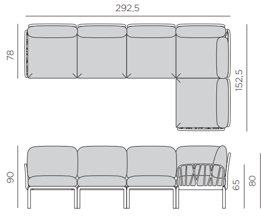 Konstrukce rohové sedačky Komodo 5 je založena na odolném rámu z regenerovaného polypropylenu vyztuženého skleněnými vlákny, obohaceného o UV přísady, což zajišťuje odolnost vůči povětrnostním podmínkám a dlouhověkost. Použití recyklovaných materiálů činí tuto rohovou sedačku ekologickou volbou. Pohodlné polštáře z látky Sunbrella®, které lze snadno sundat a prát díky zipům, zvyšují komfort používání. Rohová sedačka Komodo 5 je vynikající volbou pro ty, kteří ocení jak funkčnost, tak estetiku v exteriérech.
