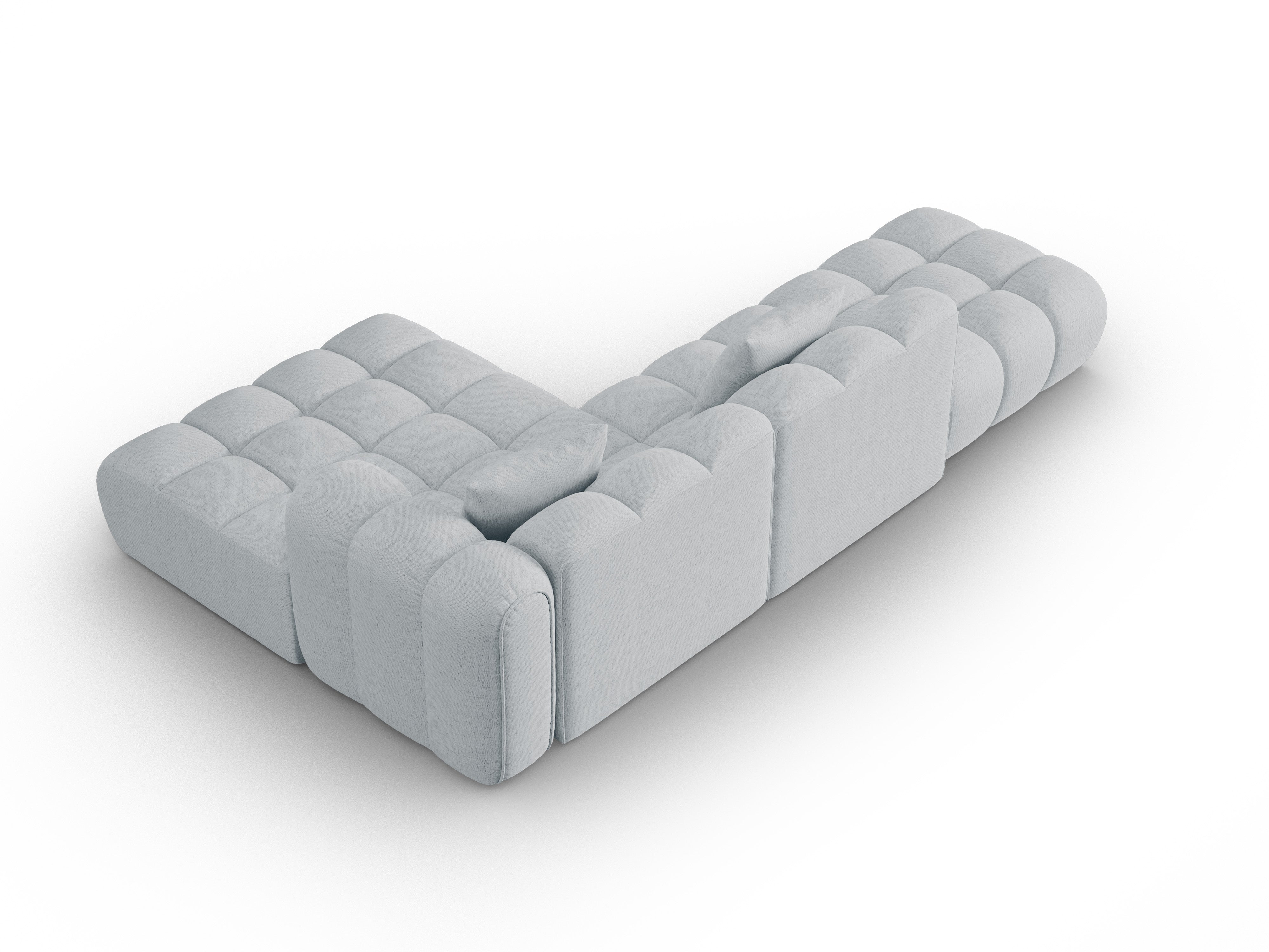 Pravostranný otevřený roh Astro je vynikající volbou pro ty, kteří si cení prostoru, pohodlí a moderního designu. Prostorný šezlong a široké sedadlo činí otevřený roh ideálním místem pro relaxaci během dne a setkání s blízkými. Pevná konstrukce a měkké polštáře zajišťují komfort, zatímco elegantní linie tvaru podtrhuje jedinečný charakter interiéru.