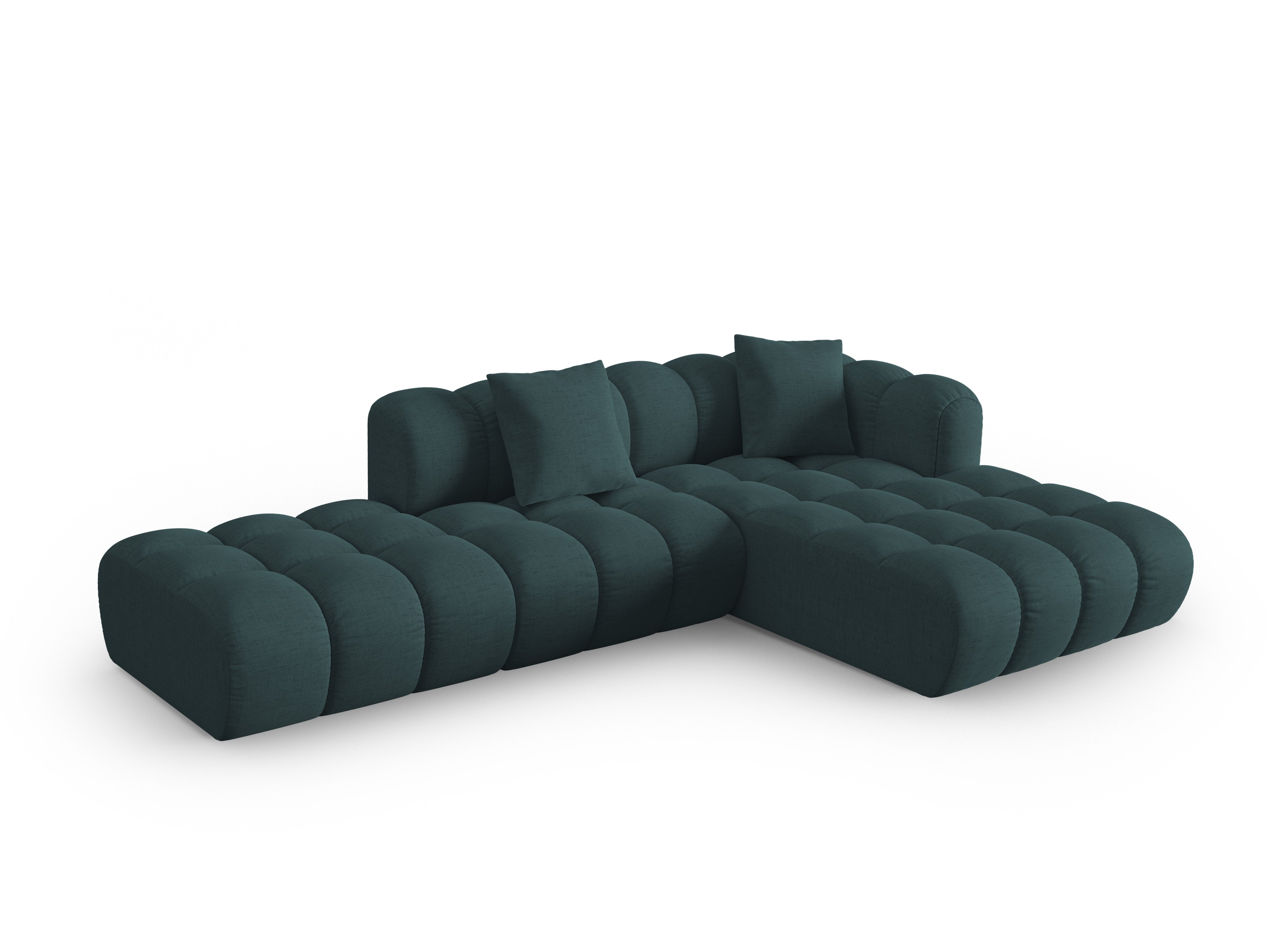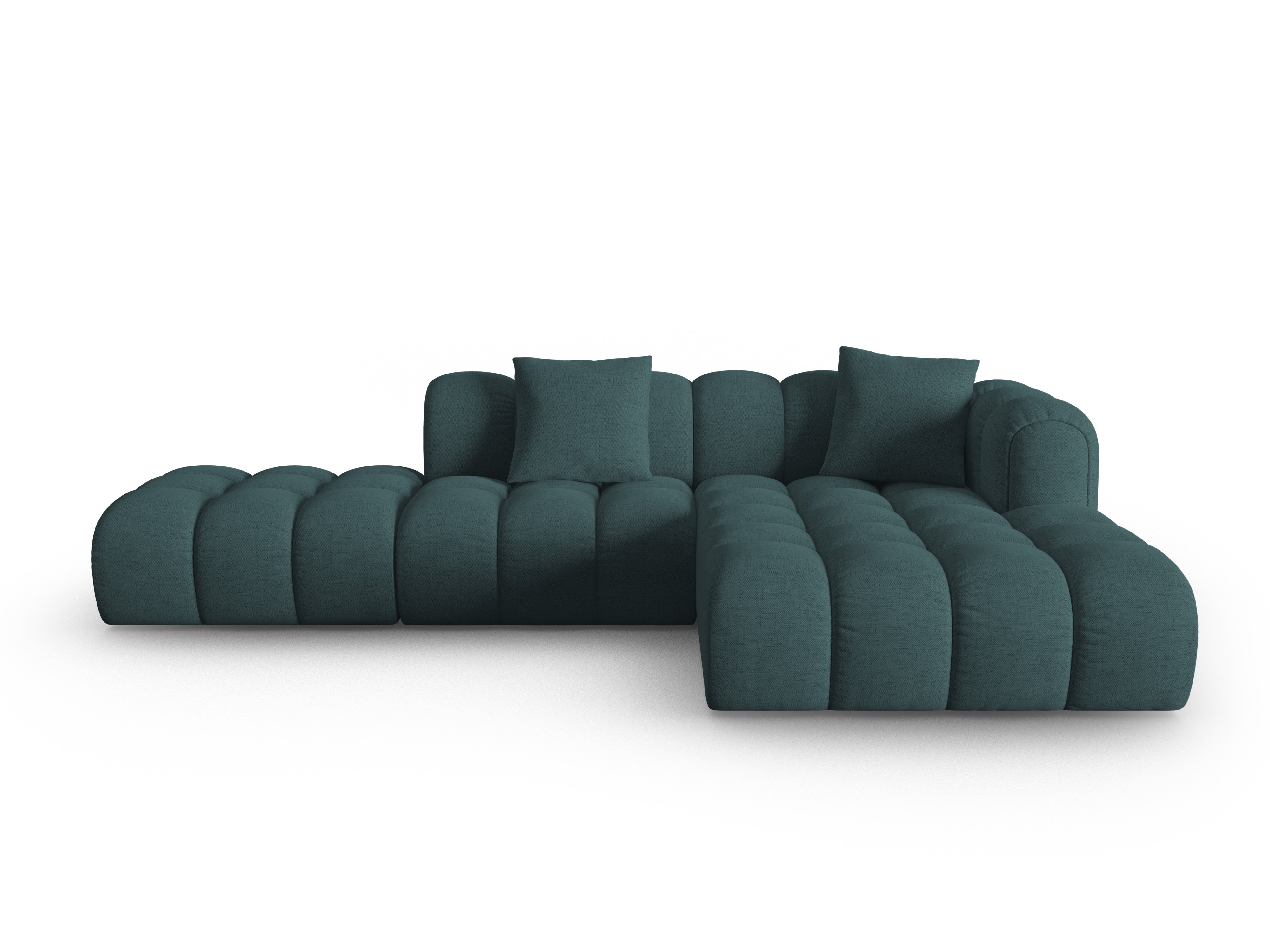 Pravostranný otevřený roh Astro je vynikající volbou pro ty, kteří si cení prostoru, pohodlí a moderního designu. Prostorný šezlong a široké sedadlo činí otevřený roh ideálním místem pro relaxaci během dne a setkání s blízkými. Pevná konstrukce a měkké polštáře zajišťují komfort, zatímco elegantní linie tvaru podtrhuje jedinečný charakter interiéru.