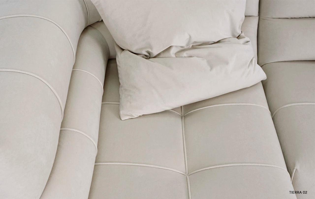 Rohový gauč Chloe je k dispozici v různých modulech, což umožňuje kreativní kombinace a vytváření personalizovaných aranžmá podle individuálních preferencí uživatele. Charakterizovaný liniovými tvary, rohový gauč získává další rozměr díky stylovému konstrukčnímu detailu – elegantnímu švu.