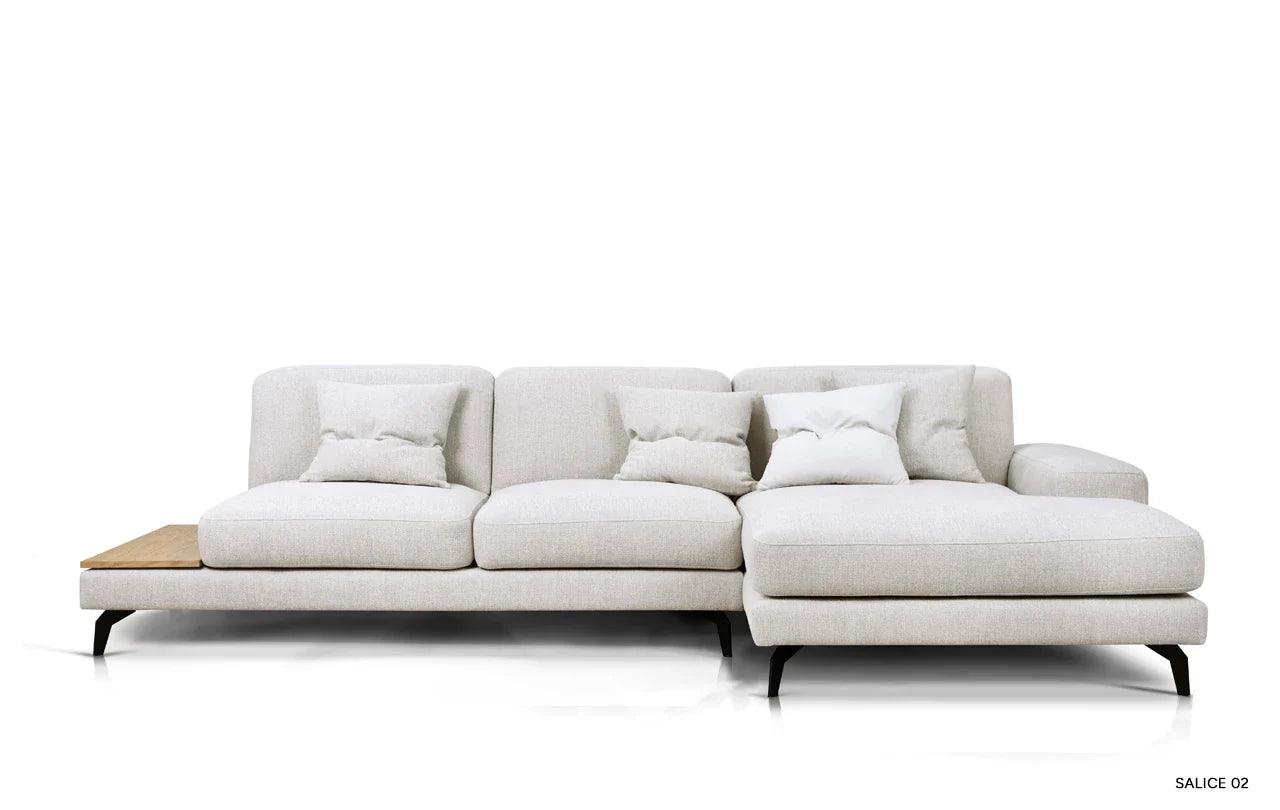 To, co odlišuje rohový gauč Enjoy od ostatního nábytku, je inovativní možnost přeměny jednoho z polštářů na praktický stůl. Tato funkčnost umožňuje volně postavit šálek s oblíbeným nápojem nebo noční lampičku, což činí rohový gauč ještě univerzálnějším.