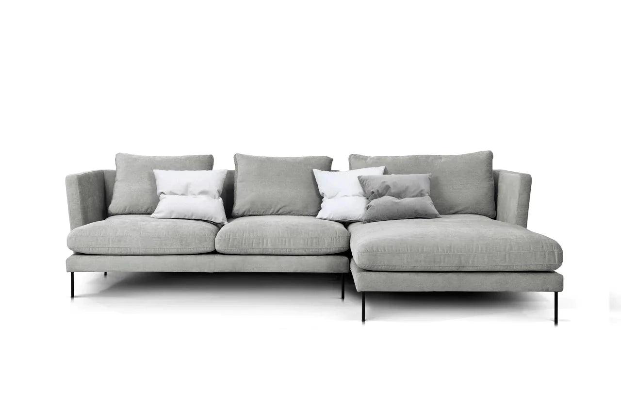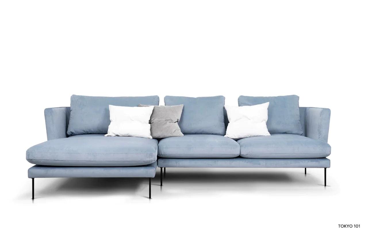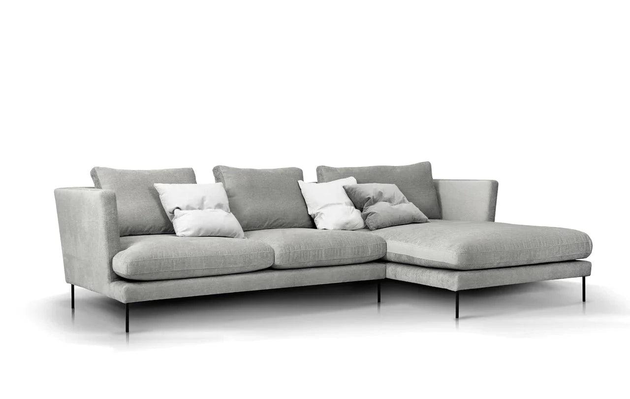 Pravostranný rohový gauč Lily je výjimečný model, který dokonale spojuje minimalistickou estetiku s pohodlím používání. Jeho štíhlé a pevné kovové nohy mu dodávají exkluzivní charakter, a lehká forma pohovky umožňuje snadné začlenění i do menších interiérů.