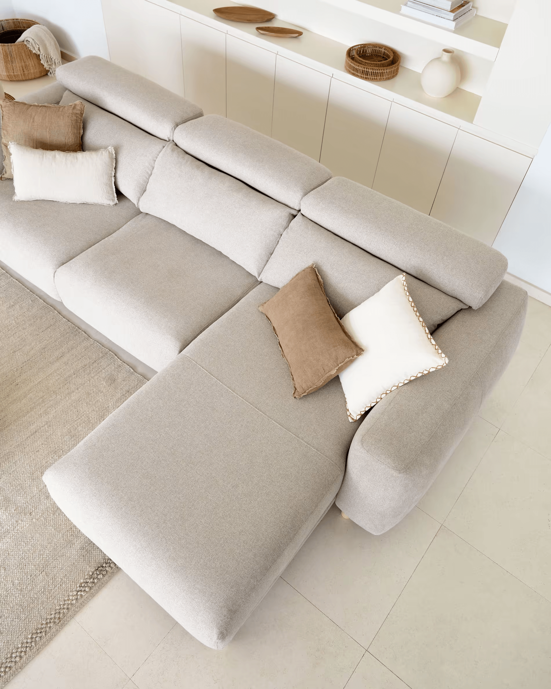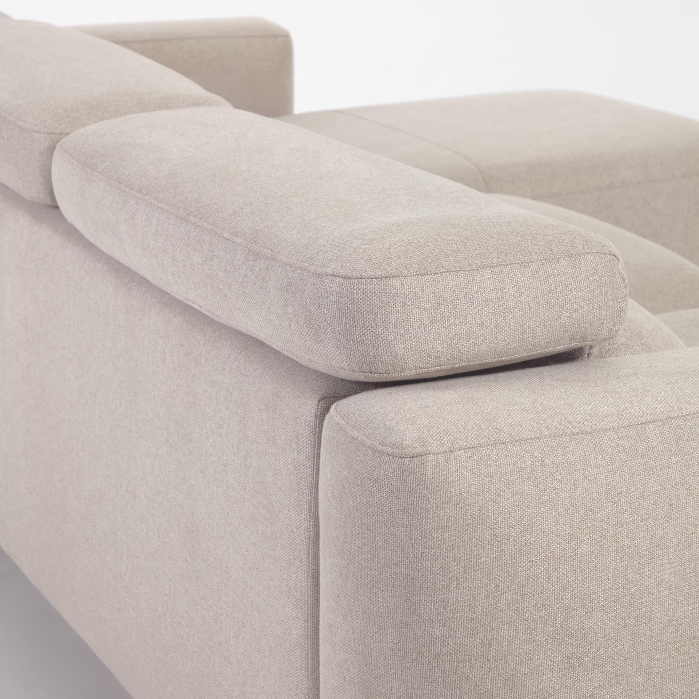 Narożnik dostępna w kolorze beżowym, prezentuje się nie tylko stylowo, ale także uniwersalnie, pasując do różnorodnych aranżacji pomieszczeń. Odchylane zagłówki i przesuwane siedziska dodają meblowi funkcjonalności, umożliwiając dostosowanie go do indywidualnych preferencji i potrzeb użytkownika.