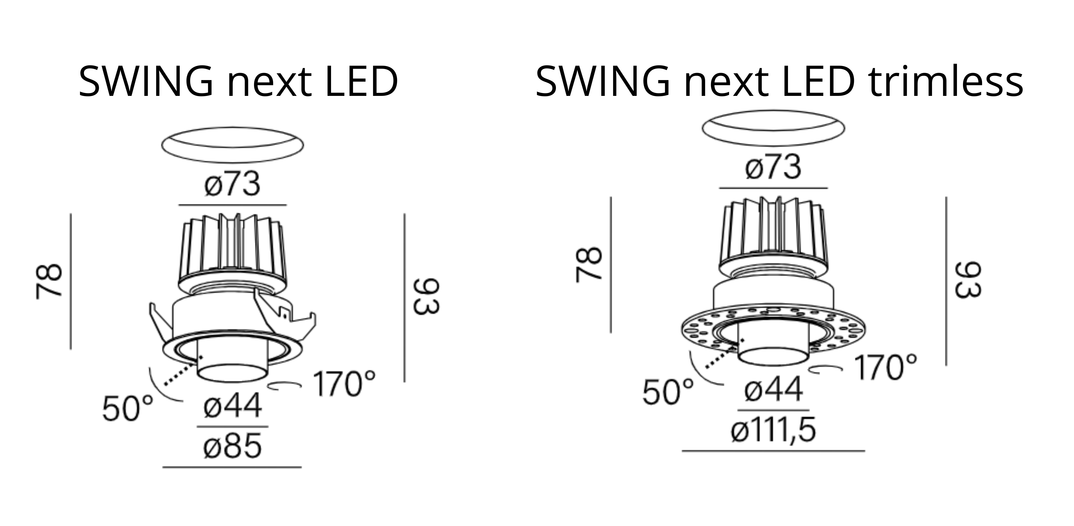 Model je k dispozici ve dvou montážních verzích: s rámečkem (Swing next LED) a v bezrámečkové verzi – Swing next LED trimless. Ta druhá umožňuje dosáhnout efektu plné integrace se stropem, což se osvědčuje zejména v moderních, minimalistických interiérech.