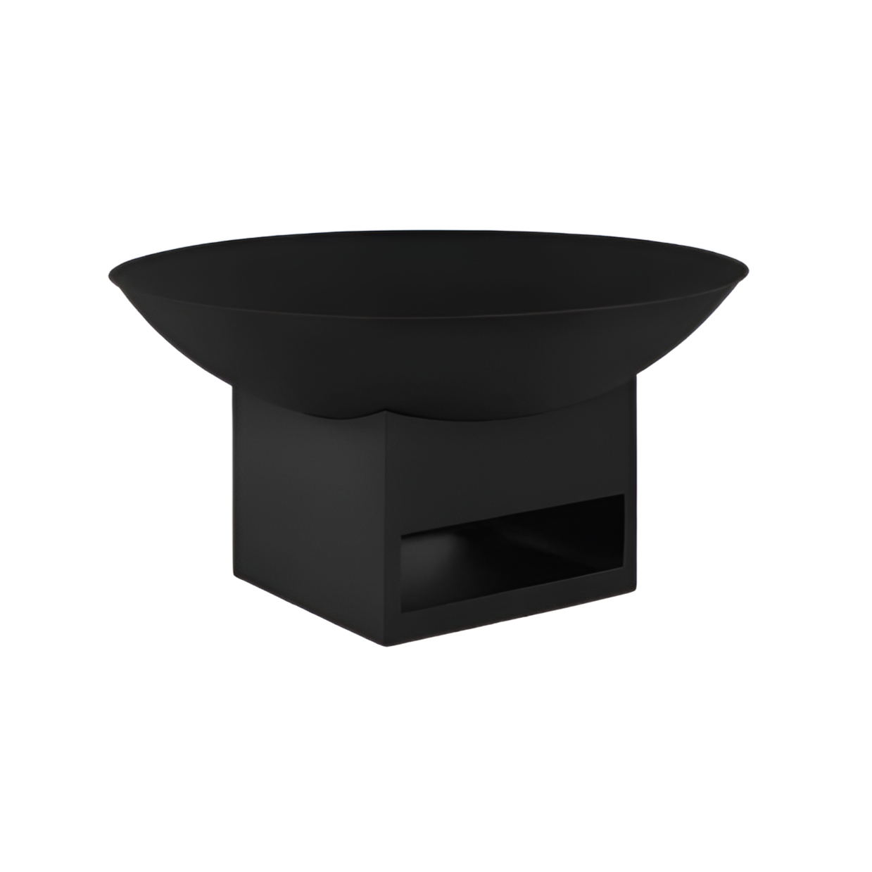 Minimalistický zahradní ohniště Davey v matné černé barvě spojuje moderní estetiku s praktickou funkčností. Kulatá mísa usazená na geometrickém podstavci s otevřenou nikou vytváří harmonickou kompozici, která skvěle zapadá do moderních zahrad, teras či venkovních odpočinkových prostor.