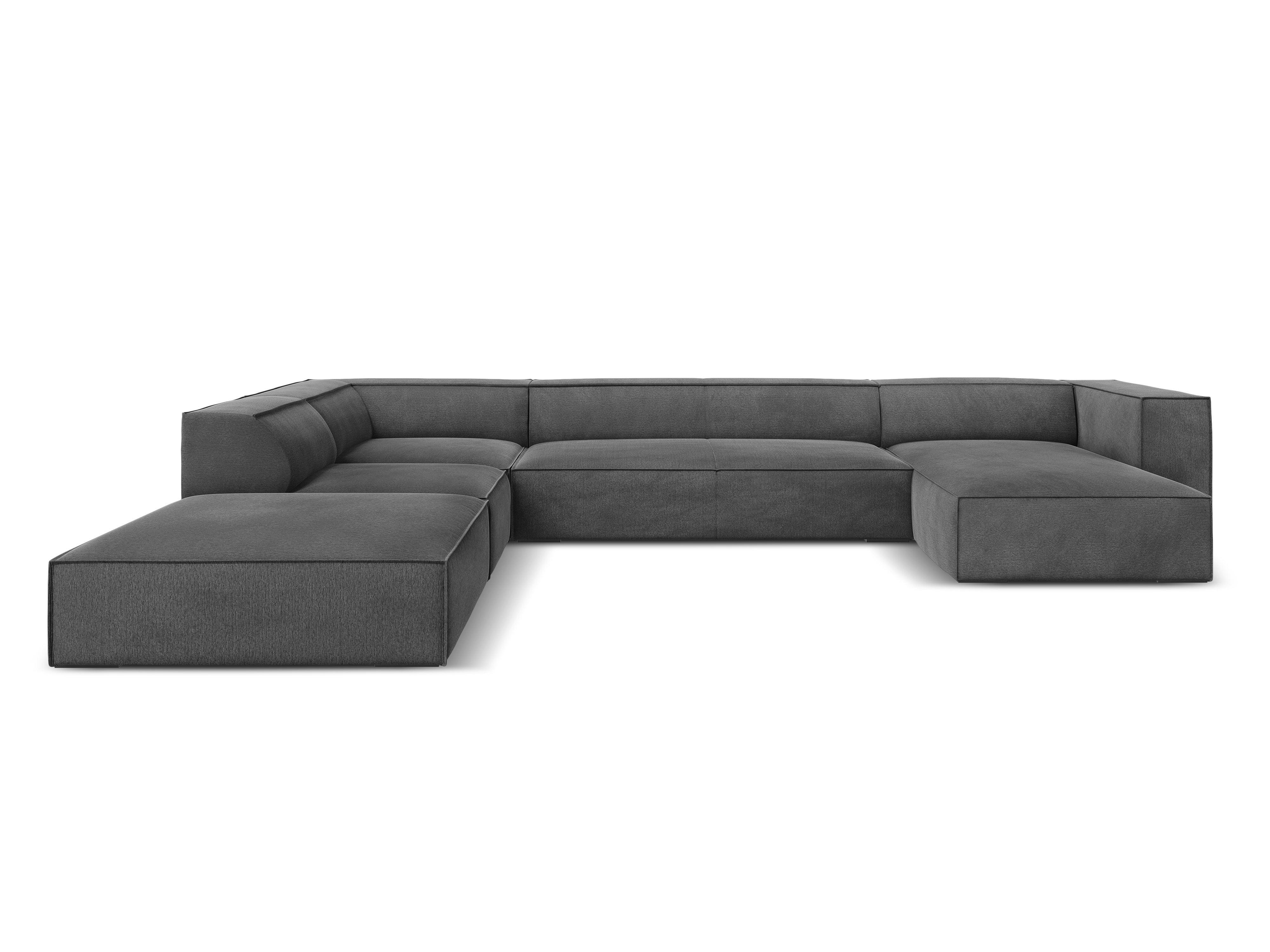 Rohová sedačka pro šest osob Madame s výrazným charakterem a elegantním provedením je skvělou volbou do moderního obývacího pokoje. Hluboké sedadlo je ideální jak pro společenská setkání, tak pro chvíle odpočinku po náročném dni. Umožňuje pohodlně relaxovat v uvolněných polohách. S nízkým profilem, širokými opěrkami a zádovými opěrkami vytváří útulný tvar.