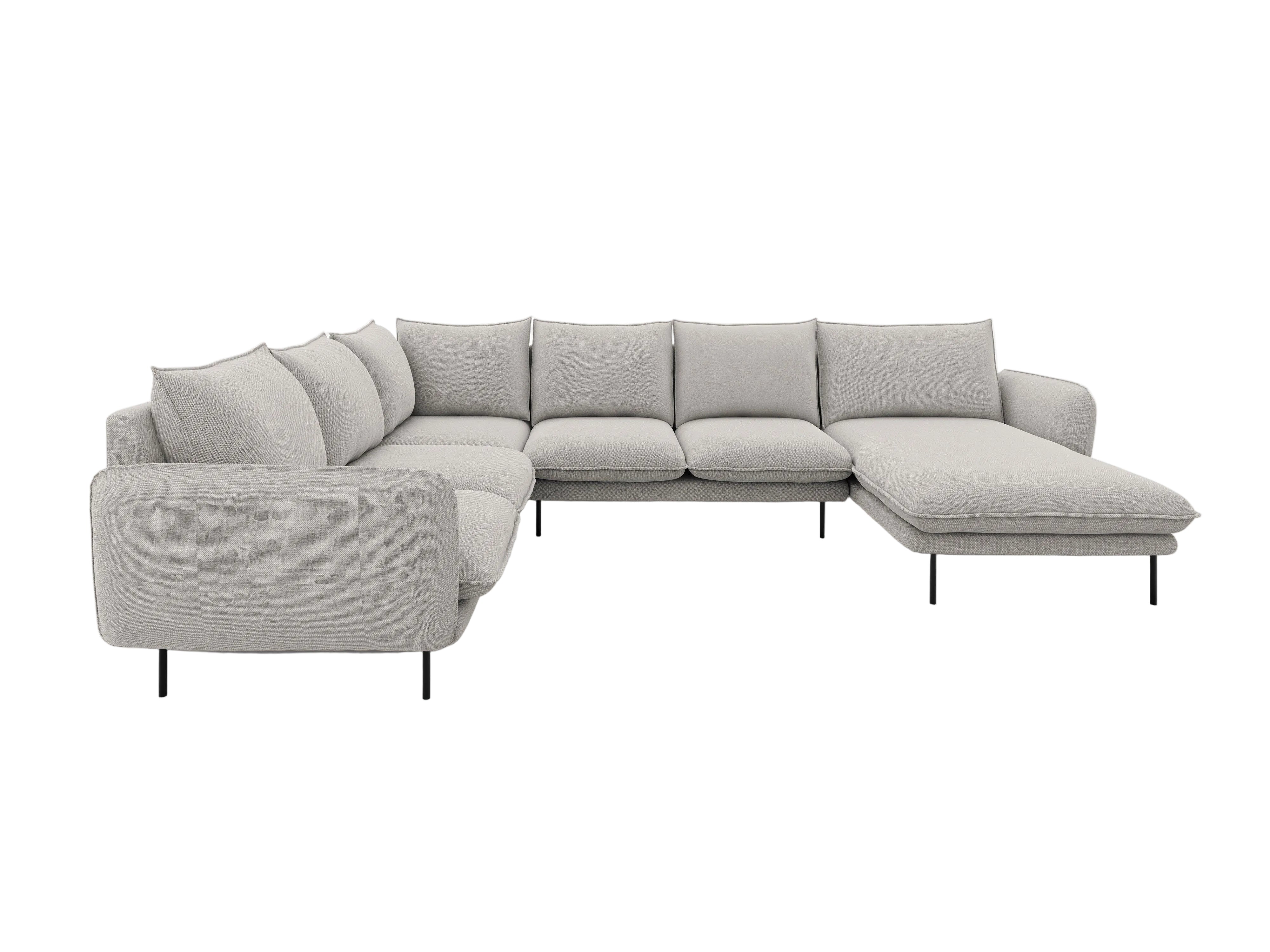 Rohová sedací souprava levostranná pro 7 osob VIENNA světle šedý šenil s černým podstavcem