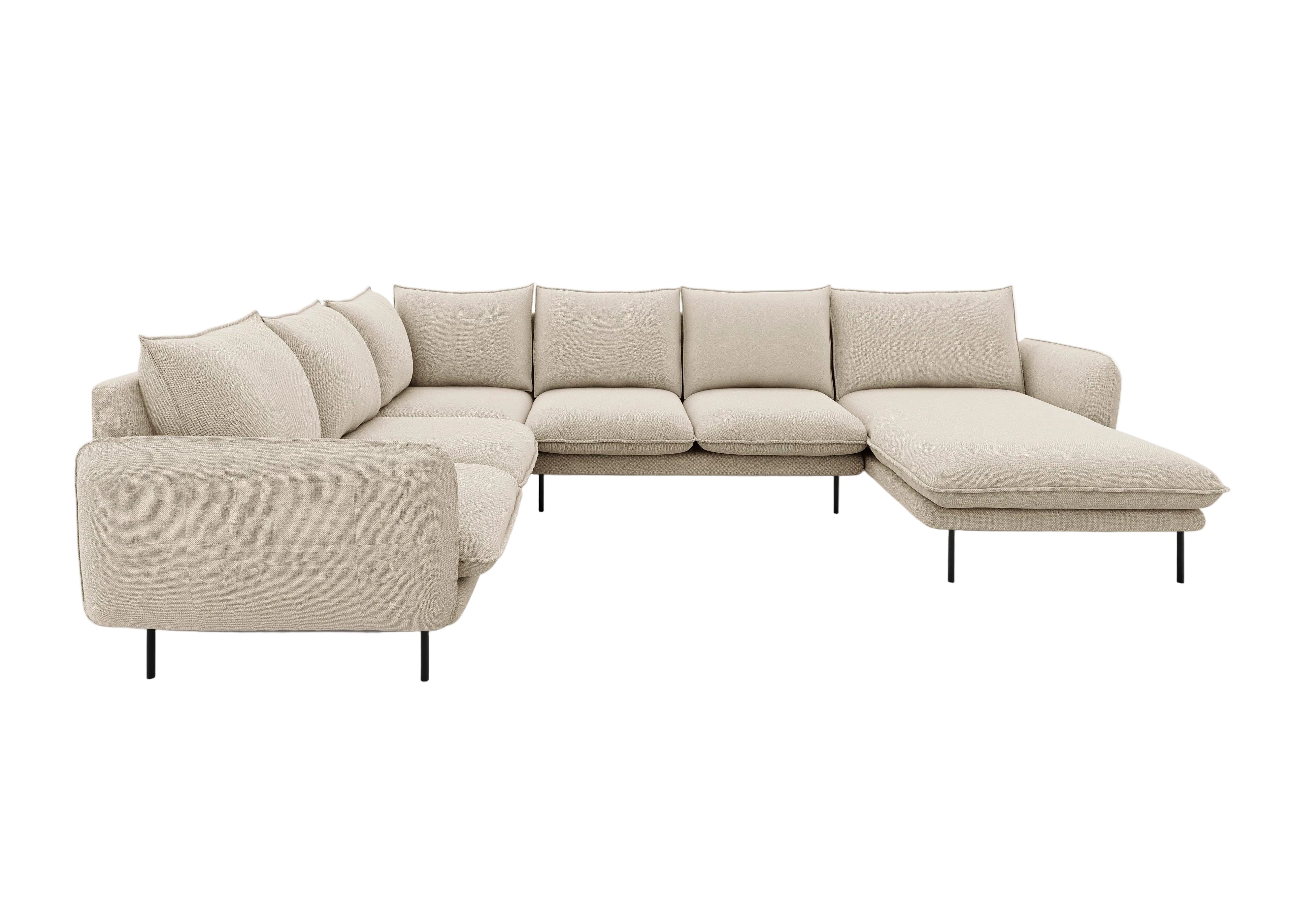 Rohová sedací souprava levostranná pro 7 osob VIENNA béžový šenil s černým podstavcem