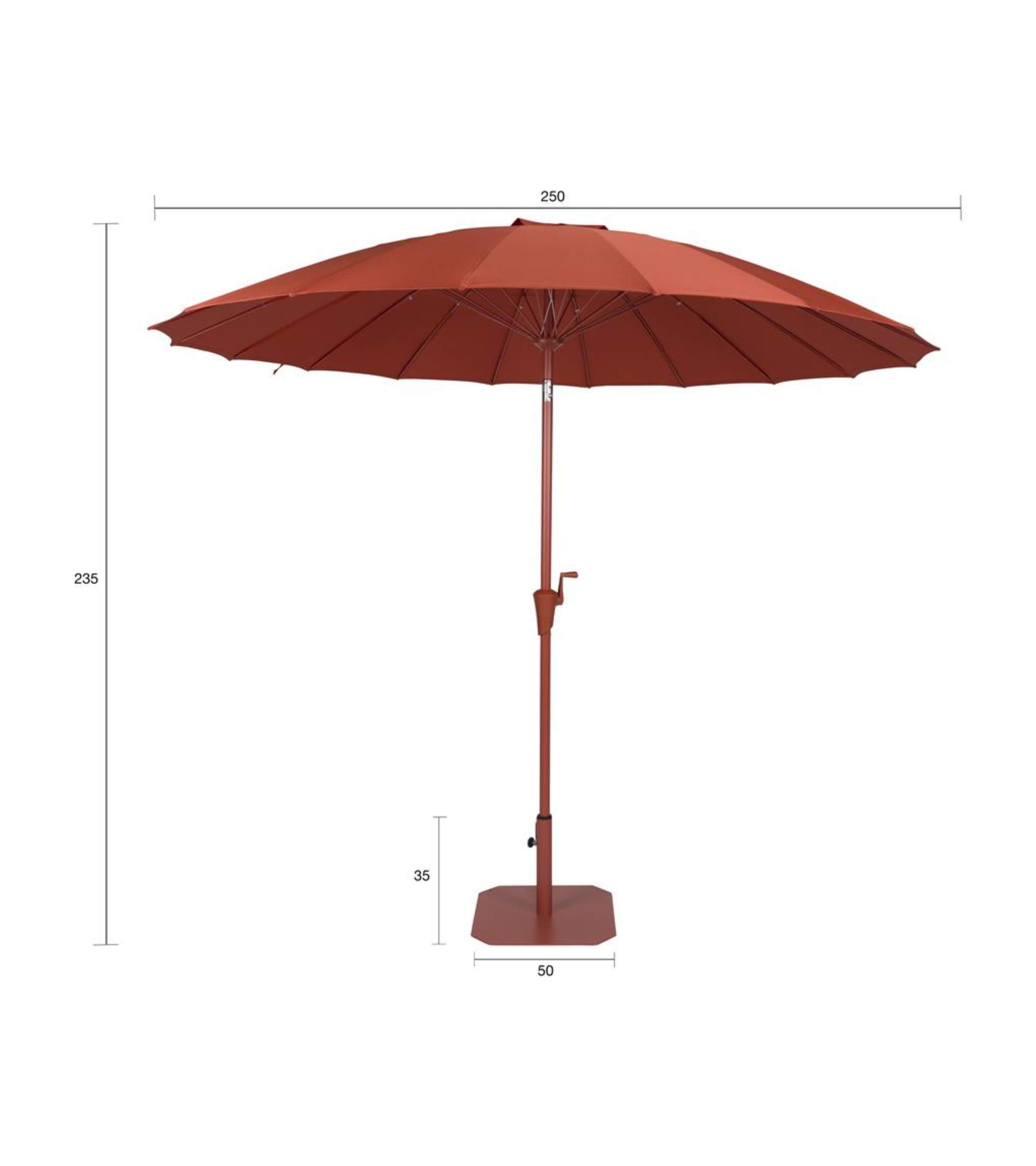 Pevná konstrukce z odolného proti povětrnostním vlivům kovu s práškovým nástřikem zajišťuje trvanlivost i za proměnlivého počasí. Součástí balení je barevně sladěná taška na uskladnění a základna. Pro maximální stabilitu se doporučuje dodatečné zatížení základny, a při silnějším větru - složení slunečníku.