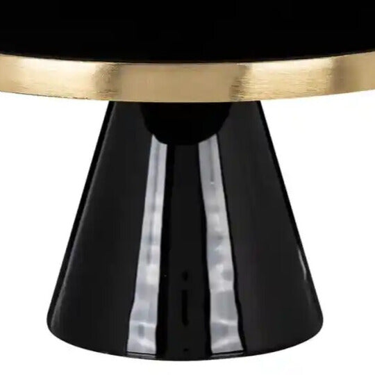 Nowoczesna patera na ciasto Elena w kolorze czarnym ze złotym wykończeniem to elegancki akcent, który doda szyku każdemu przyjęciu. Jej prosta, geometryczna forma w połączeniu z połyskującą emalią i subtelnym złotym detalem sprawia, że prezentuje się wyjątkowo efektownie i stanowi ozdobę stołu. Idealnie nadaje się do serwowania tortów, ciast, owoców czy wykwintnych deserów.