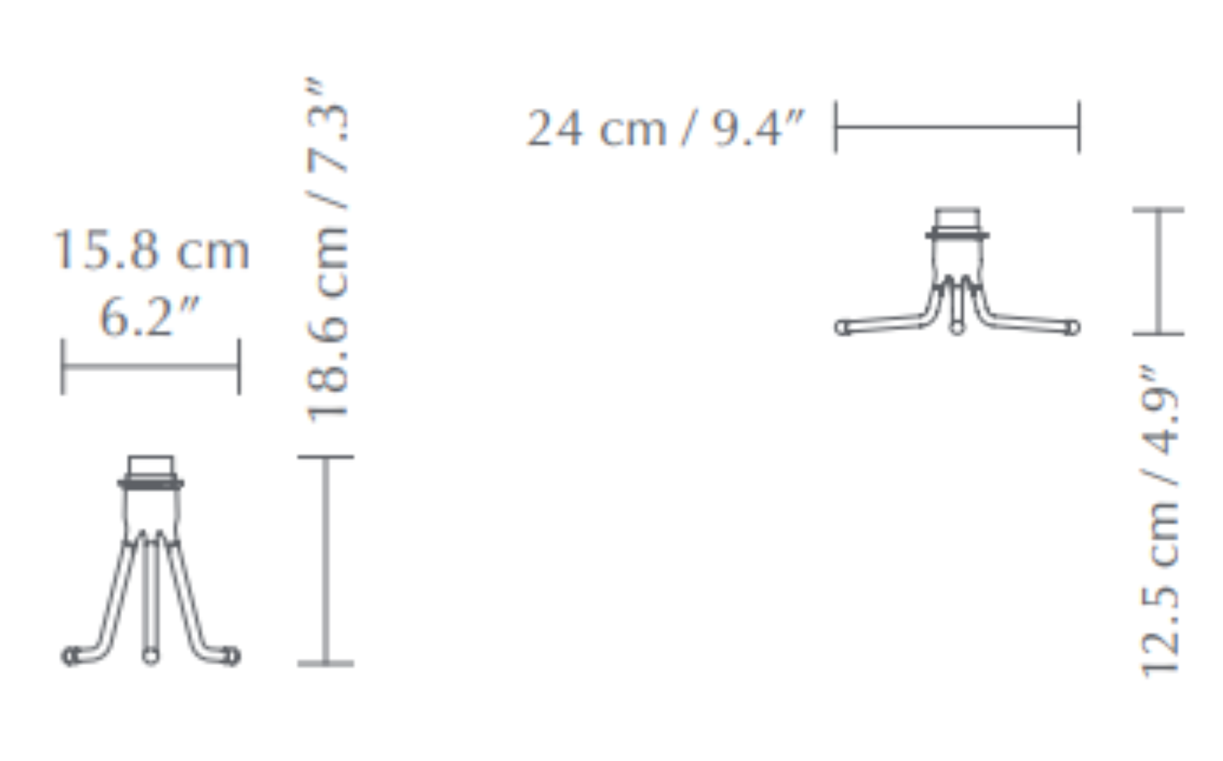Díky podstavci lampy Tripod Base se váš stínidlo během chvilky promění v elegantní stolní lampu. Nastavitelný trojnožka 2 v 1 umožňuje přizpůsobit elegantní a robustní nohy do pozice "nízké" nebo "vysoké", což z něj činí univerzální řešení pro různé typy stínidel a různá použití.