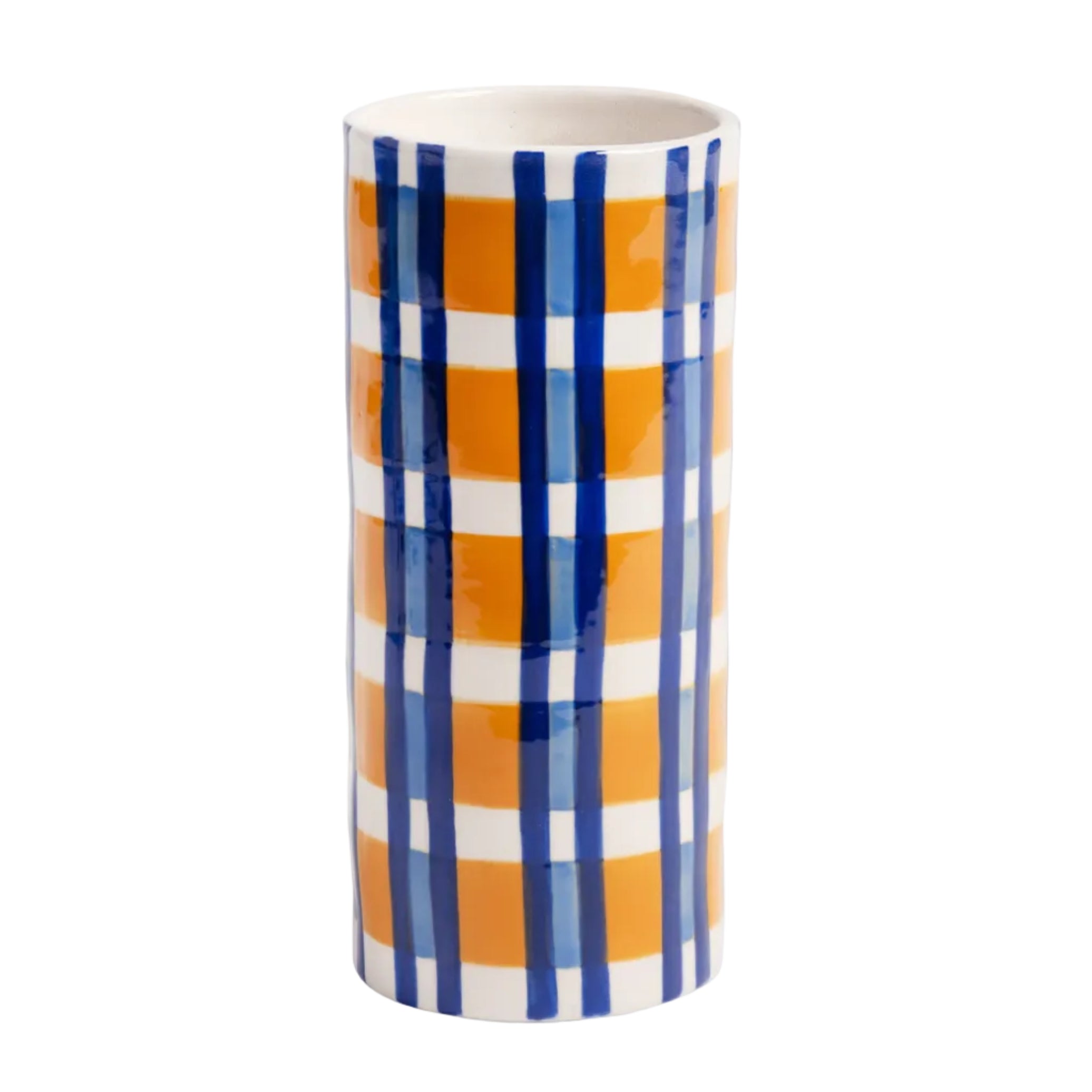 Váza CLASH CHECK bílá s oranžovou a modrou