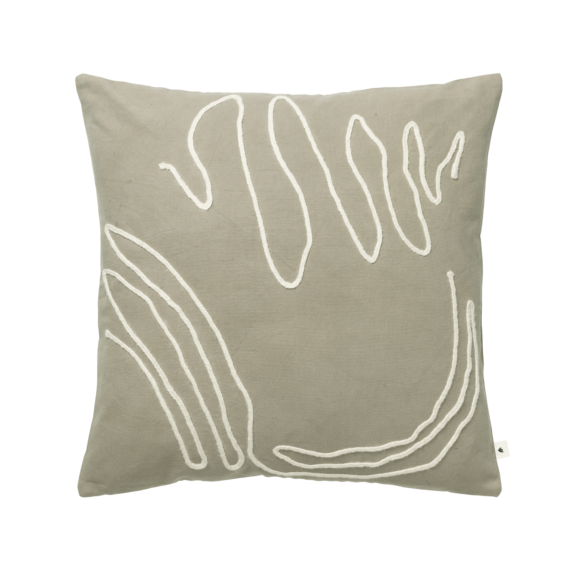 Polštář Jot je spojení přírodních materiálů a uměleckého řemesla, inspirované stopami, které zanechává voda, a pohyby pobřežních proudů. Na strukturálním pozadí z organické bavlny je ručně přišita kontrastní pletenina, vytvářející vzor, který odráží krásu a dynamiku přírody.