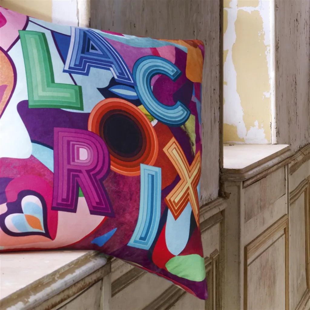 Ponořte se do světa Christiana Lacroix Maison s touto odvážnou, velkou čtvercovou polštářem. Tento dekorativní, designový polštář, digitálně tištěný na elegantním bavlněném saténu, je zdoben písmeny Lacroix s vyšívanými akcenty.