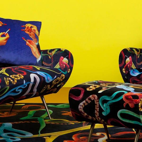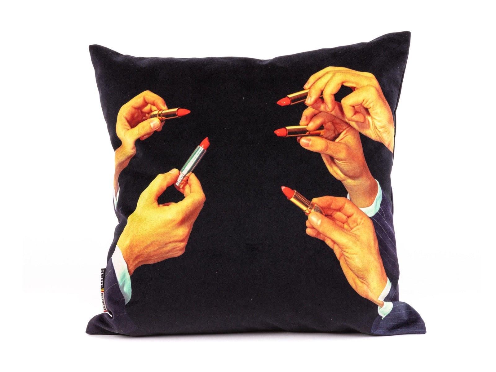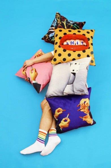 Designerský polštář od italského krále avantgardy — Seletti, který jako brána do jiného, surrealistického rozměru, dodá interiéru jedinečný charakter. Výrazné, dynamické barvy a lehce kontroverzní koláž vytvářejí originální umělecké dílo.