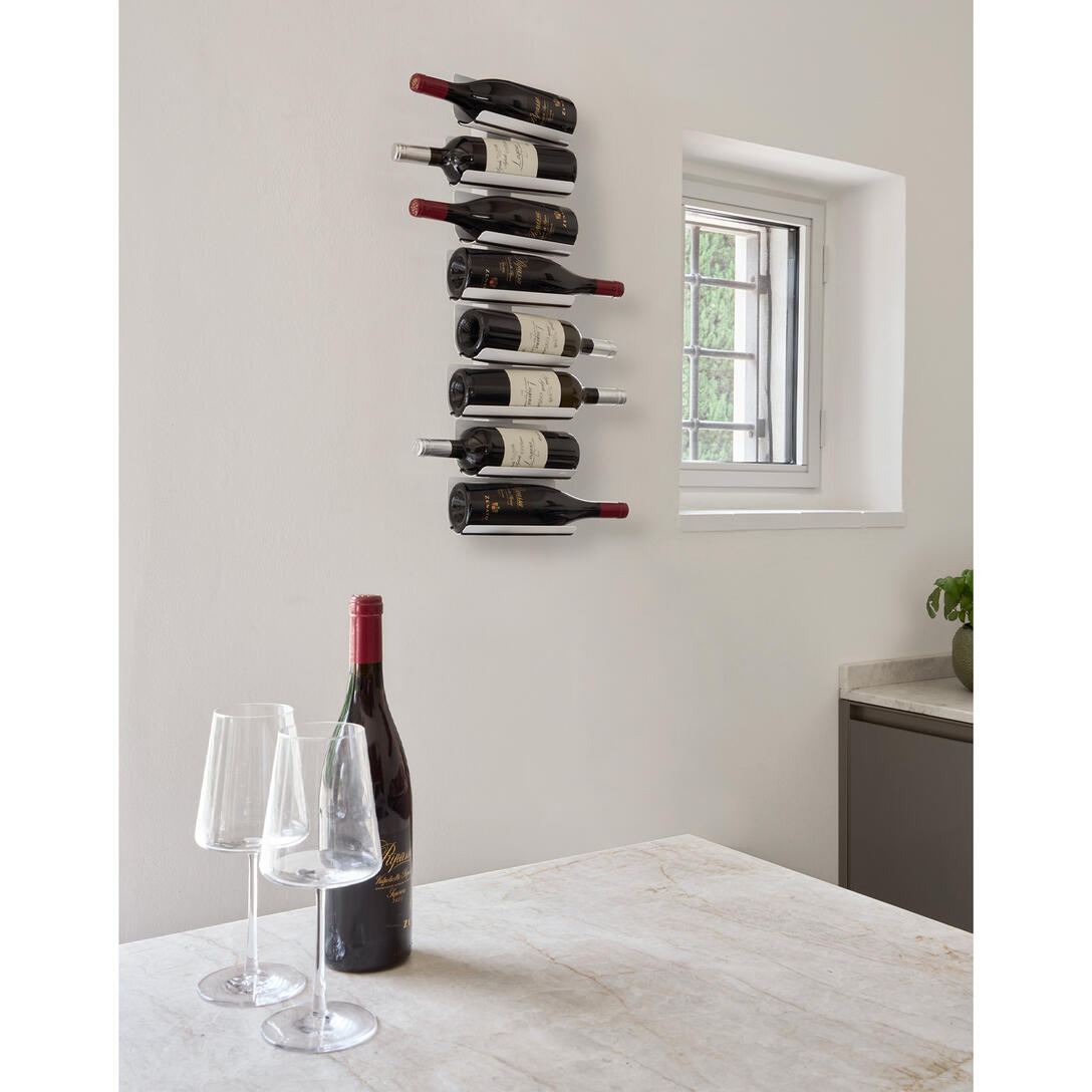 Ptolomeo Vino Wall je elegantní a minimalistický stojan na víno, navržený Brunem Rainaldim, který dává pocit, že láhve levitují ve vzduchu. Díky své vertikální, úsporné formě a neviditelným policím umožňuje estetické a dekorativní vystavení vína. Ideálně se hodí jak do domácnosti – do kuchyně, jídelny či obývacího pokoje – tak do komerčních prostor, jako jsou restaurace, hotely nebo vinárny. Dostupný ve třech výškách, Ptolomeo Vino Wall je nesmírně funkční a pojme od několika do více než 20 lahví, zajišťující stabilitu a bezpečnost při skladování.