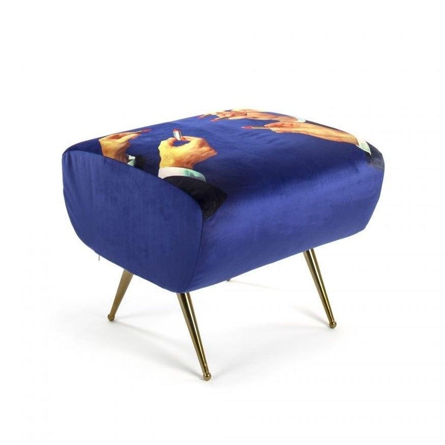 Designerský puf ve stylu 50. let od italského krále avantgardy — Seletti, který jako brána do jiného, surrealistického rozměru, dodá interiéru jedinečný charakter. Čalounění v výrazných, dynamických barvách a lehce kontroverzní koláž tvoří originální umělecké dílo.