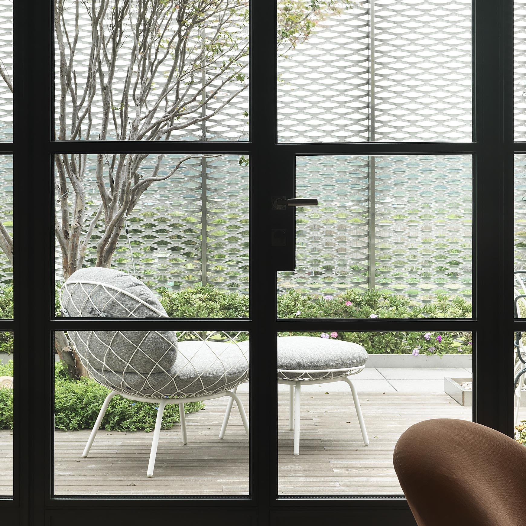Miękka poduszka siedziska z trudnopalnej pianki poliuretanowej pokryta jest zdejmowanym pokrowcem z tkaniny „Polyhedra”, co ułatwia czyszczenie i pielęgnację. Elegancka forma i charakterystyczna pleciona konstrukcja sprawiają, że Pina idealnie dopełnia aranżacje ogrodowe, tarasy czy nowoczesne przestrzenie hotelowe.