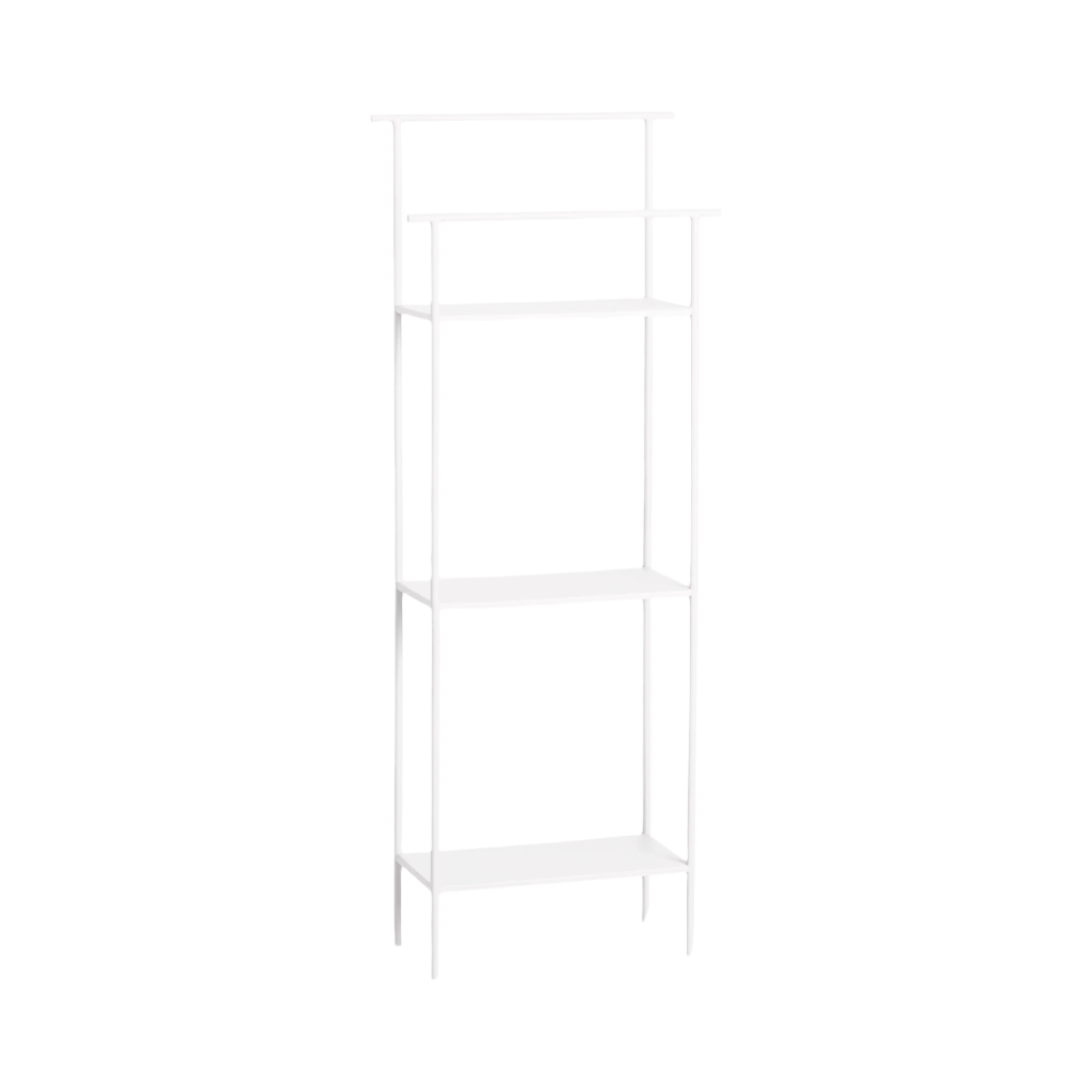Kolekce Dora, zahájená ikonickým věšákem Dora Clothes Stand, byla rozšířena o sérii volně stojících nábytkových kusů ideálních do koupelny. Vyrobená z práškově lakovaného kovu, vyniká jednoduchostí a funkčností, a díky odolnosti proti rzi se skvěle hodí do vlhkého prostředí. Dora Shelving Unit je praktická police, která pojme všechny nezbytnosti do koupelny – od kosmetiky po ručníky – a její štíhlá forma zajišťuje, že se úspěšně vejde i dovnitř sprchového koutu.