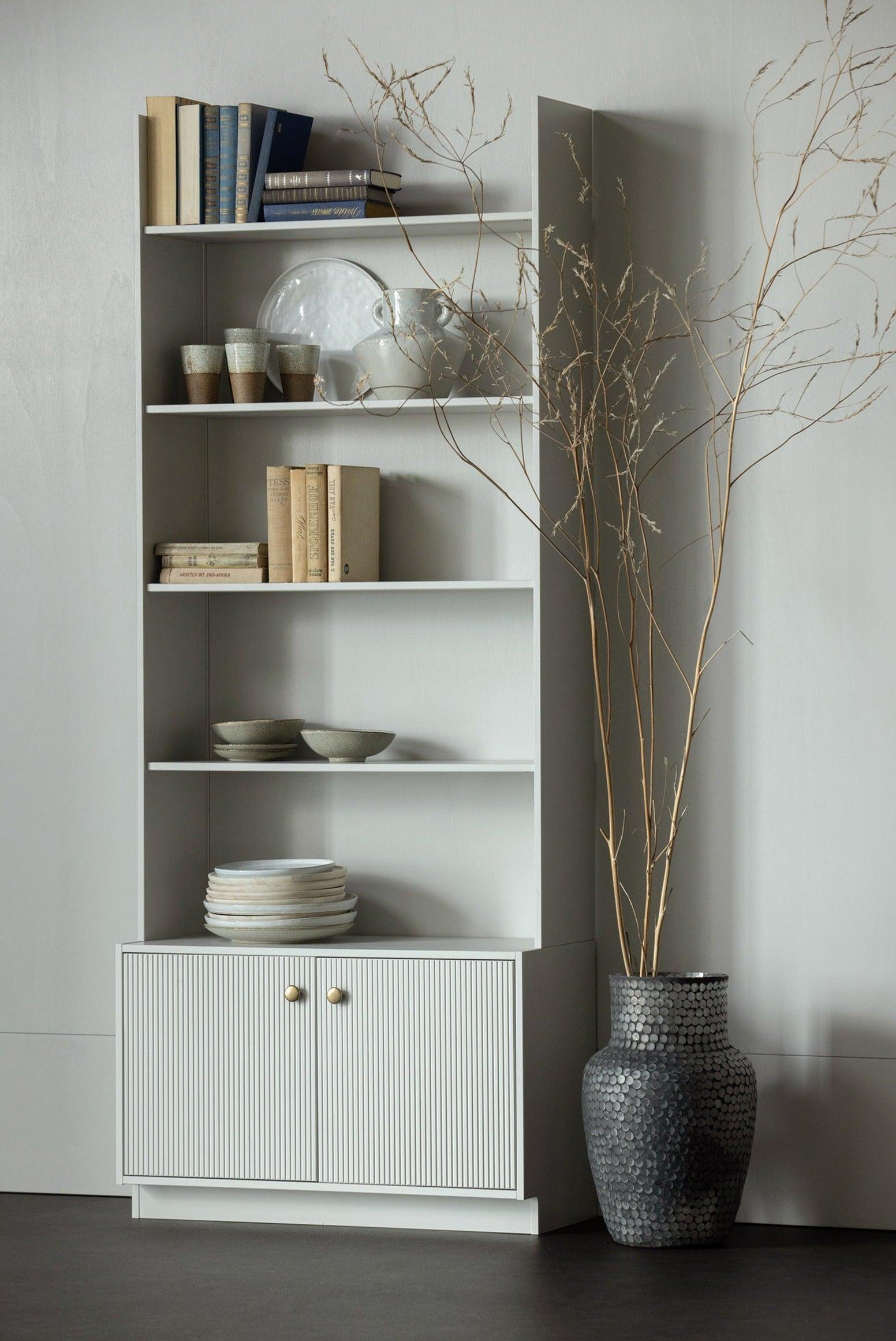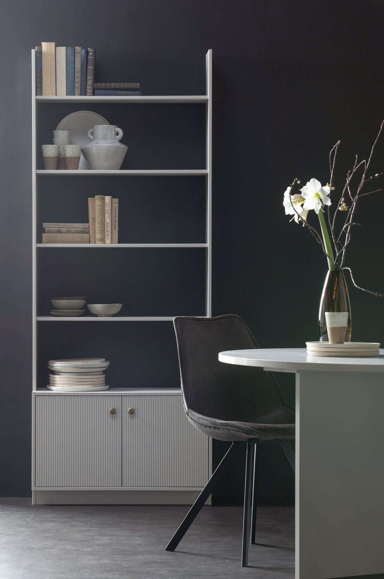 Šedý regál Madu je jako čistý list připravený k zapsání vašich nábytkových inspirací, jako bezchybné plátno, které zdůrazňuje krásu vašich oblíbených předmětů.