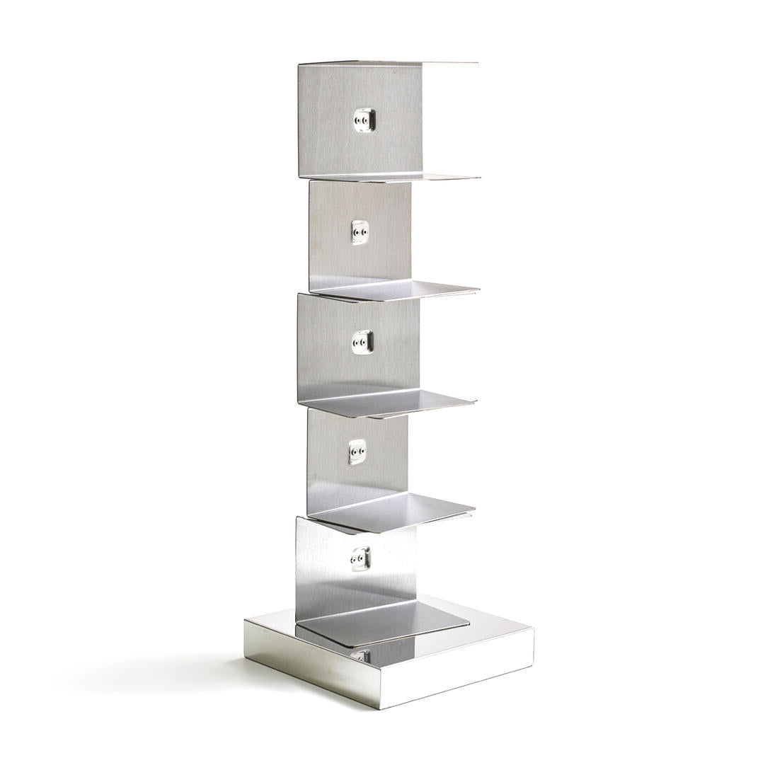 Minimalistická forma a výrazná funkčnost činí Original Ptolomeo vhodným jak do moderních, tak do klasických interiérů. Dostupný v různých provedeních (matná černá, lesklá bílá, nerezová ocel, efekt corten) a ve třech výškách, tento regál je nejen praktický, ale také dekorativní. Je to nadčasový kus nábytku, který zabírá málo místa a dodává prostoru charakter. Ideální do obývacího pokoje, pracovny nebo ložnice.