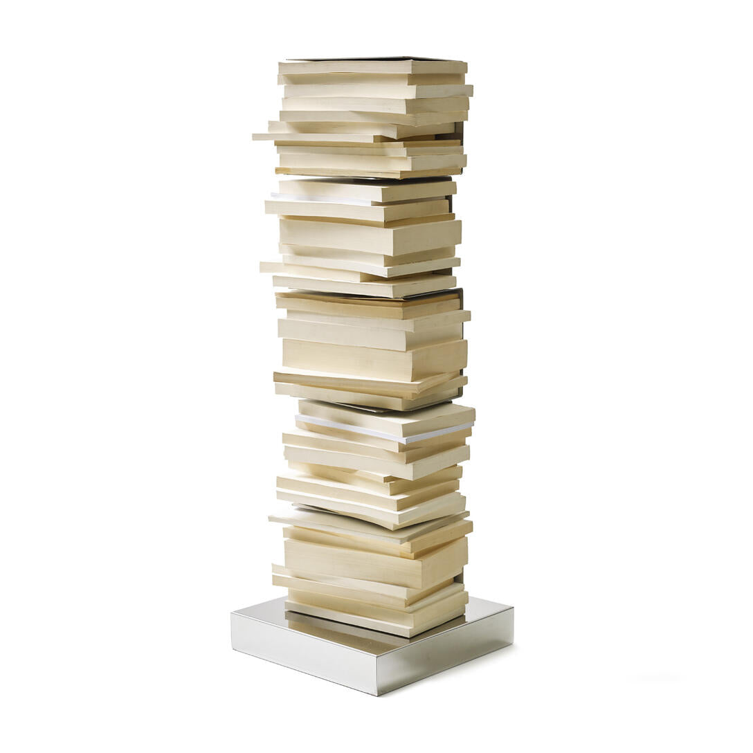 Regál Original Ptolomeo, navržený Brunem Rainaldim a oceněný prestižní cenou Compasso d’Oro v roce 2004, je ikonou současného designu, která revolučně mění způsob ukládání knih. Tento stojící, vertikální regál je na první pohled jednoduchou ocelovou kolumnou, k níž jsou připevněny tenké police. Naplněný knihami, mizí z dohledu, vystavujíc pouze svůj obsah, což mu dodává jedinečný efekt – jako by knihy levitovaly ve vzduchu.