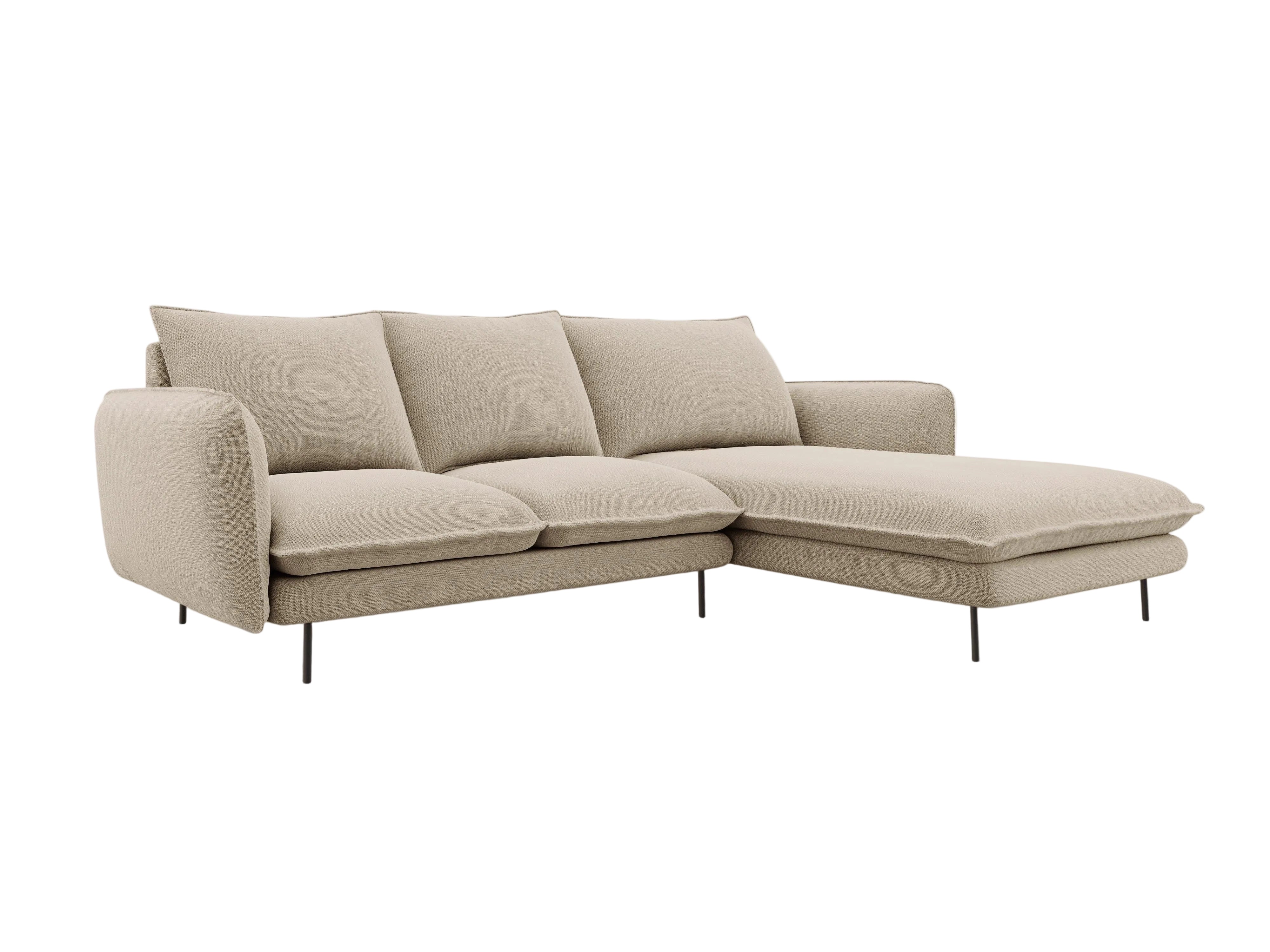 Pravostranný rohový gauč pro 5 osob VIENNA béžový šenil s černým podstavcem