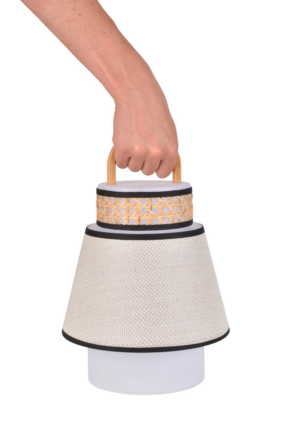 Venkovní lampa Singapour v béžovém odstínu je přenosná venkovní lampa vyrobená z polypropylenu s bambusovou rukojetí. Její textilní stínidlo je vybaveno odnímatelnou přírodní rákosovou vrstvou, což lampě dodává jedinečný charakter. Disponuje dobíjecím LED podstavcem s přiloženým USB kabelem, který nabízí 3 teploty barev a 2 intenzity osvětlení.