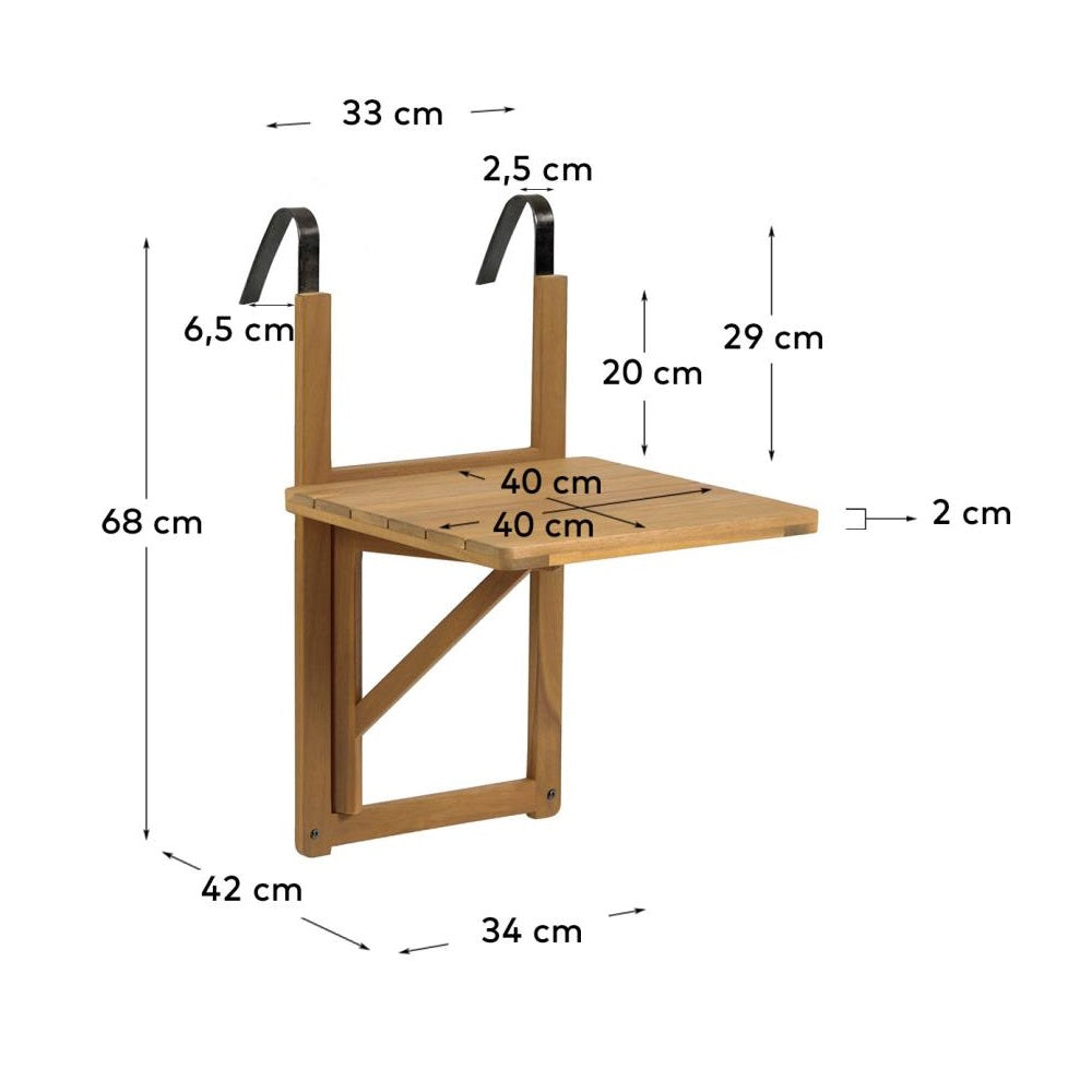 Pokud máte balkon, máte poklad. Díky skládacímu stolu Amarilis z masivního, odolného akáciového dřeva si nyní můžete užívat svůj domov, bez ohledu na to, jak malý je. Zavěste ho na zábradlí a snadno složte, když ho již nepoužíváte.