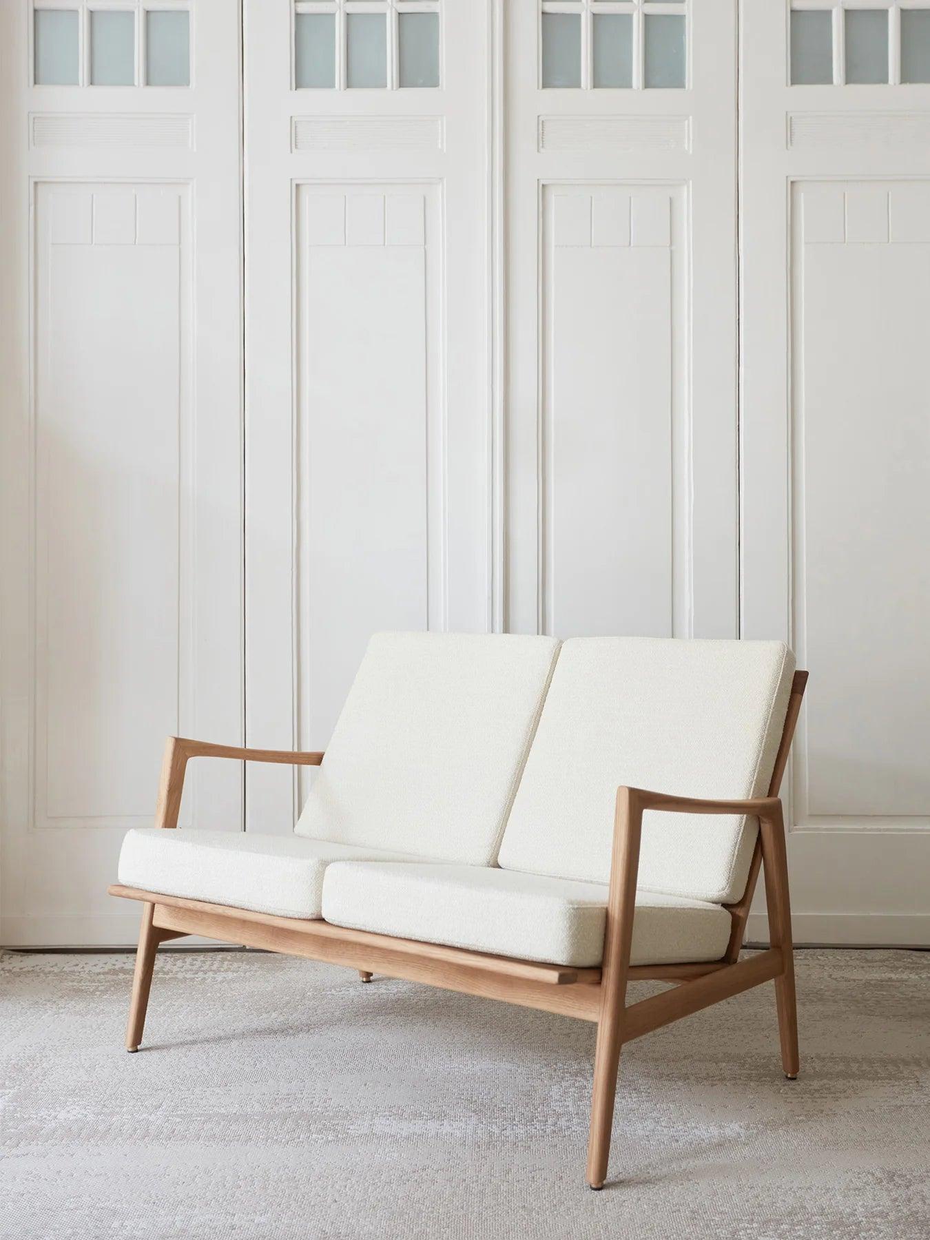 Sofa pro 2 osoby STEFAN bílá v tkanině Boucle Snow