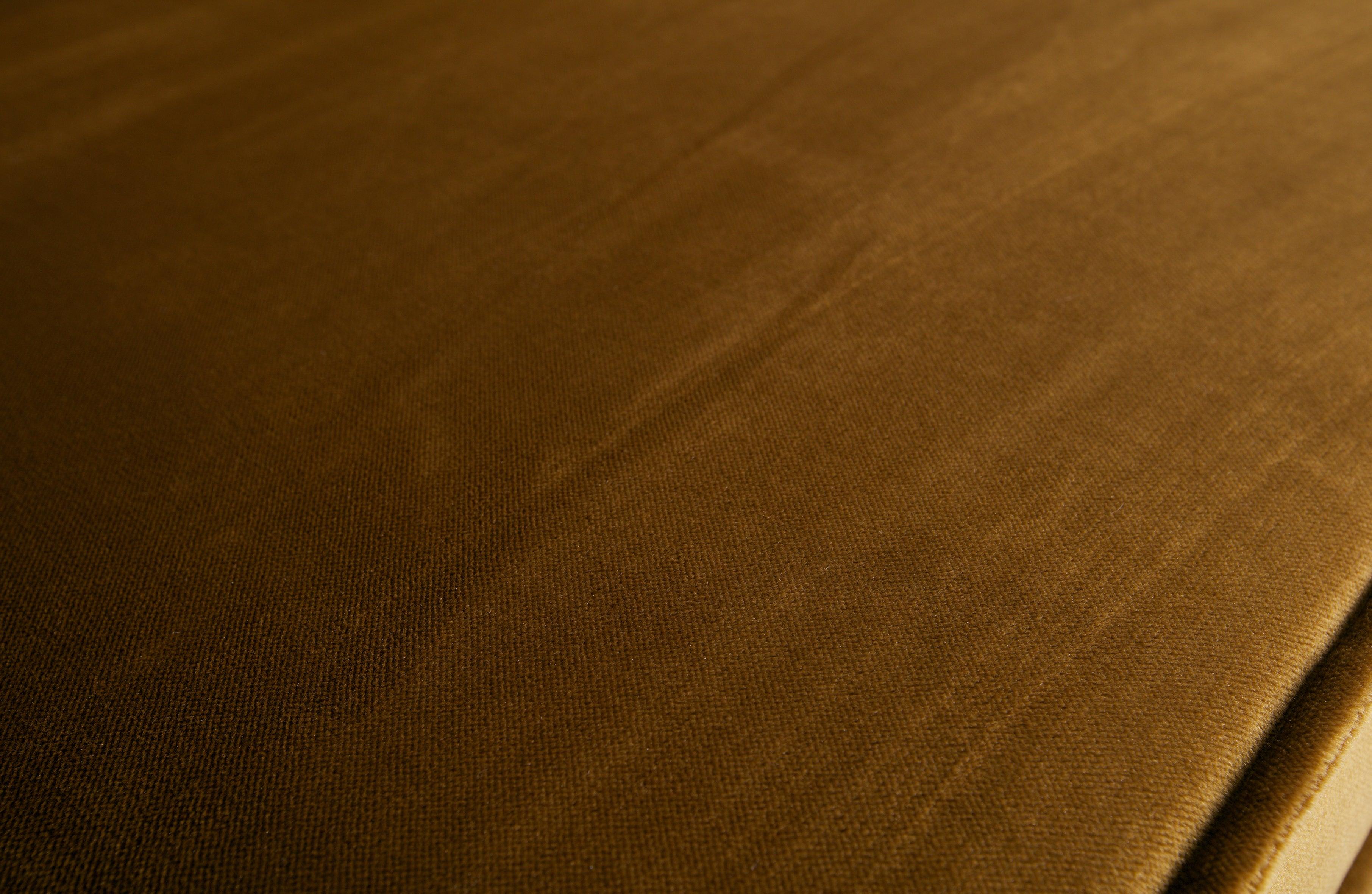 Pohovka v medovém odstínu je prostorná, nabízí spoustu místa k sezení a její odolná tkanina je vyrobena z sametového materiálu.