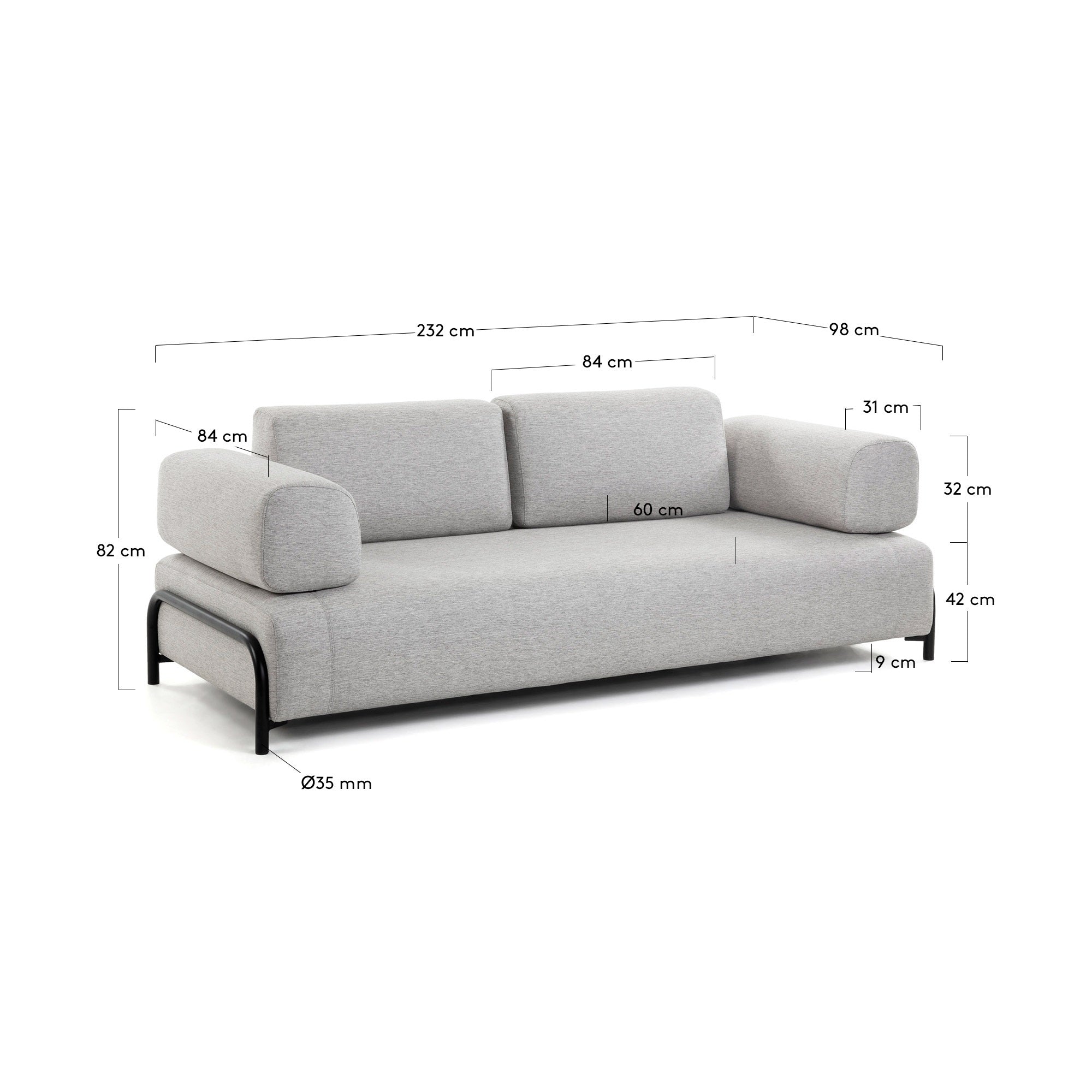 Jednoduchá, a přesto rafinovaná forma trojmístné pohovky Compo přitahuje pozornost na první pohled. Linie a proporce byly pečlivě navrženy, aby poskytovaly nejen estetiku, ale také výjimečné pohodlí při používání. Vnitřek pohovky je vyplněn viskoelastickou pěnou, která se přizpůsobuje tvaru těla a zajišťuje vynikající podporu pro páteř.