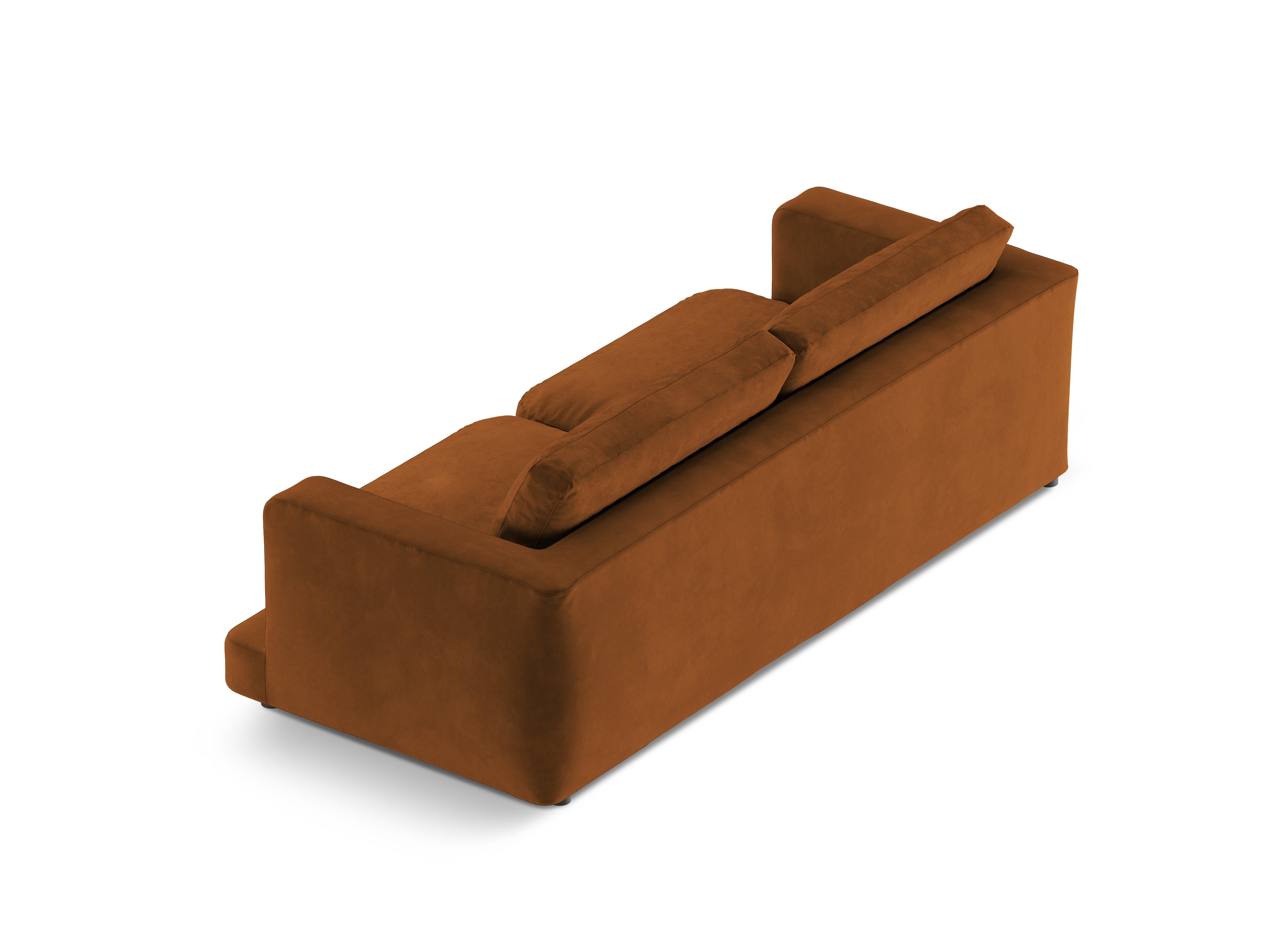 Měkké polštáře a pružiny zig-zag v sedáku zajišťují, že sametová pohovka pro 3 osoby nabízí komfort odpočinku jak při každodenním relaxu, tak při společenských setkáních. Je to elegantní a funkční pohovka, navržená v Evropě s péčí o každý detail.