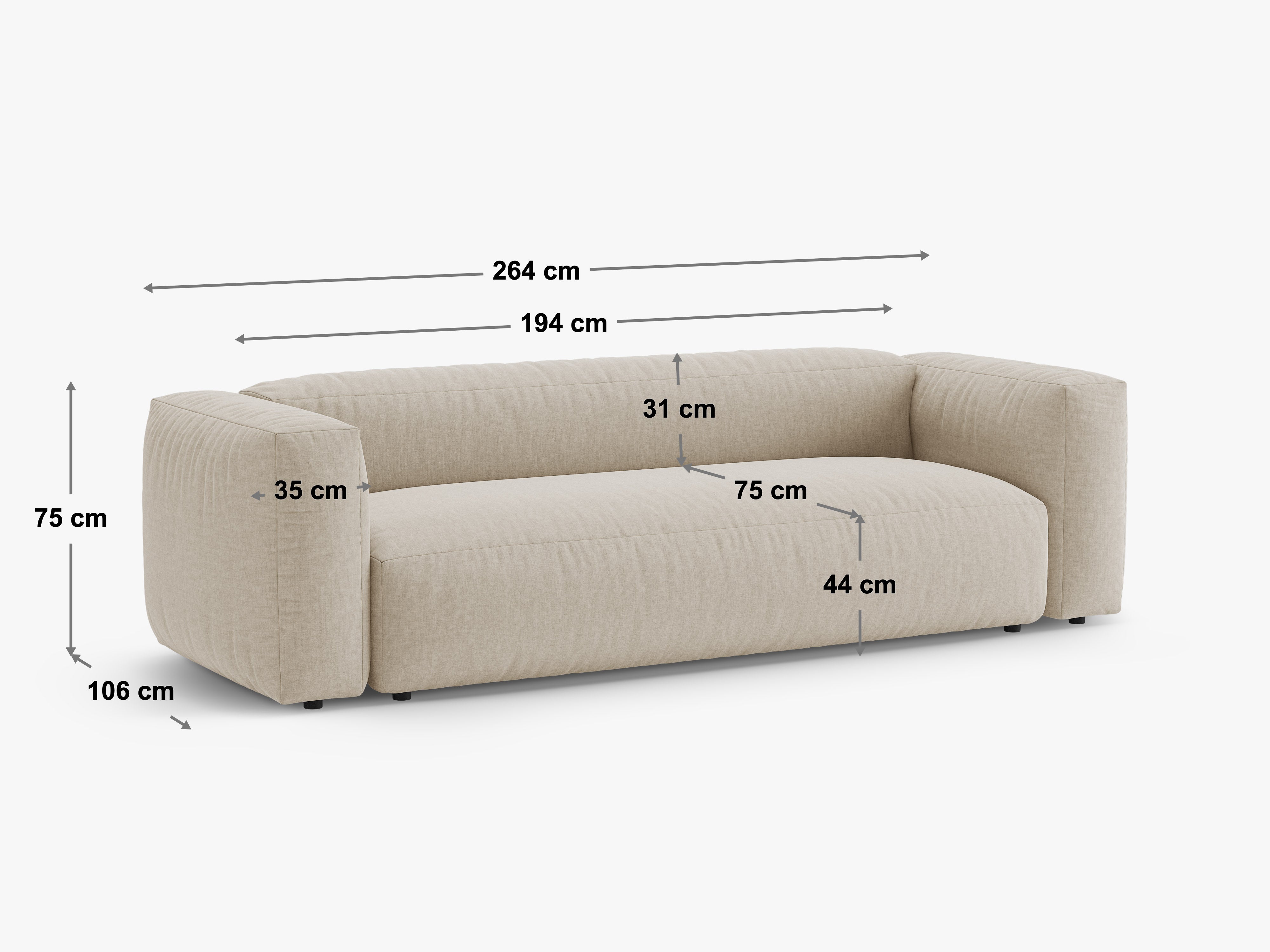 Přípustná tolerance pro čalouněný nábytek je ±4 cm. Tyto rozdíly vyplývají z vlastností materiálů použitých při výrobě a specifik procesu čalounění.