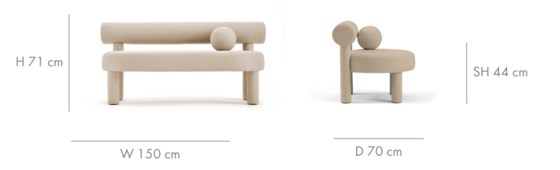 Sofa Gropius CS1 je spojení funkce a umění. Kulatá poduška a puf v této kolekci vybízejí k interakci a zábavě, což dodává celku jedinečný charakter. Čalouněné křeslo v této kolekci, stejně jako ostatní produkty NOOM, je pojmenováno na počest známých umělců a architektů modernismu, což podtrhuje její spojení s historií umění. Sofa Gropius CS1 není jen nábytek, ale také pocta velkým myslitelům, kteří utvářeli principy modernismu.