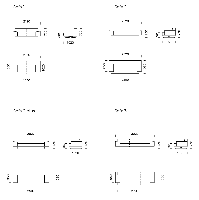 V nabídce Nobonobo se nacházejí dvoumístné a třímístné pohovky, rohové sedací soupravy, modulární pohovky konfigurovatelné a praktické rozkládací pohovky. Sortiment značky doplňují křesla, konferenční stolky a stoly.
