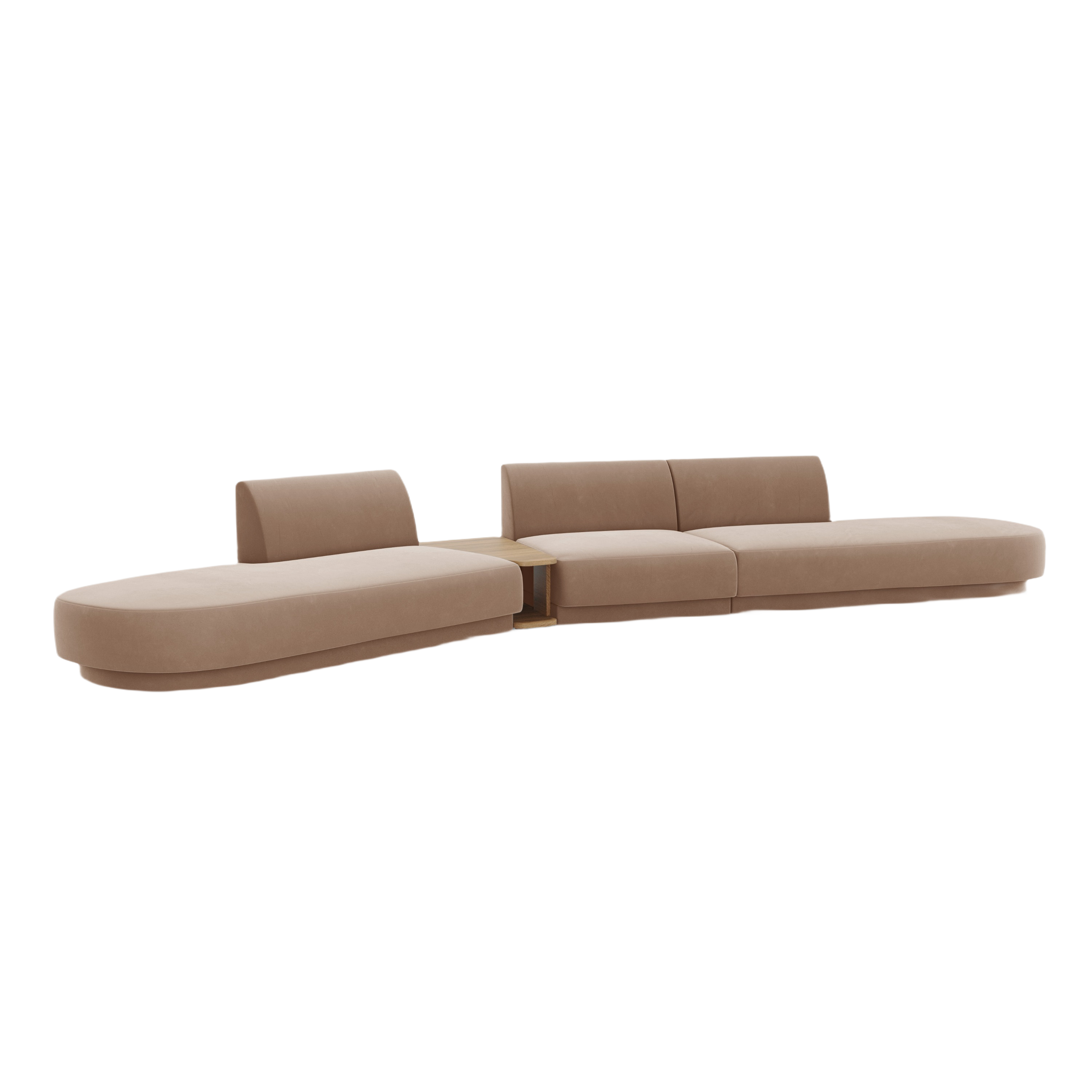 Sofa modułowa lewostronna ze stolikiem 5-osobowa aksamitna MILEY cappuccino