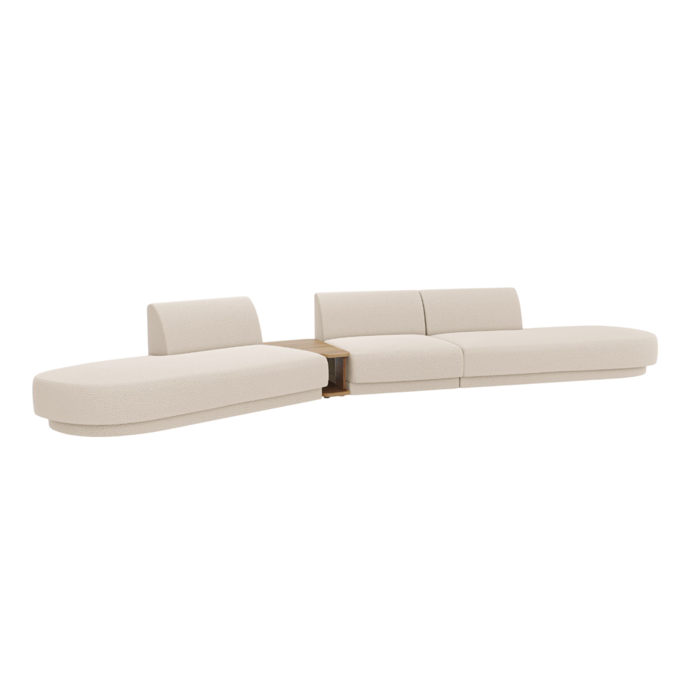 Pohovka je potažena tkaninou bouclé Baloo, která se vyznačuje těsným, zkrouceným tkaním s trojrozměrným efektem. Díky velmi vysoké odolnosti proti oděru bouclé Baloo zaručuje dlouhodobé používání bez viditelných známek opotřebení. Modulární konstrukce a úchyty typu „krokodýl“ umožňují vytvářet soudržné sestavy, které lze přizpůsobit vlastním potřebám, kombinující styl, komfort a praktická řešení.