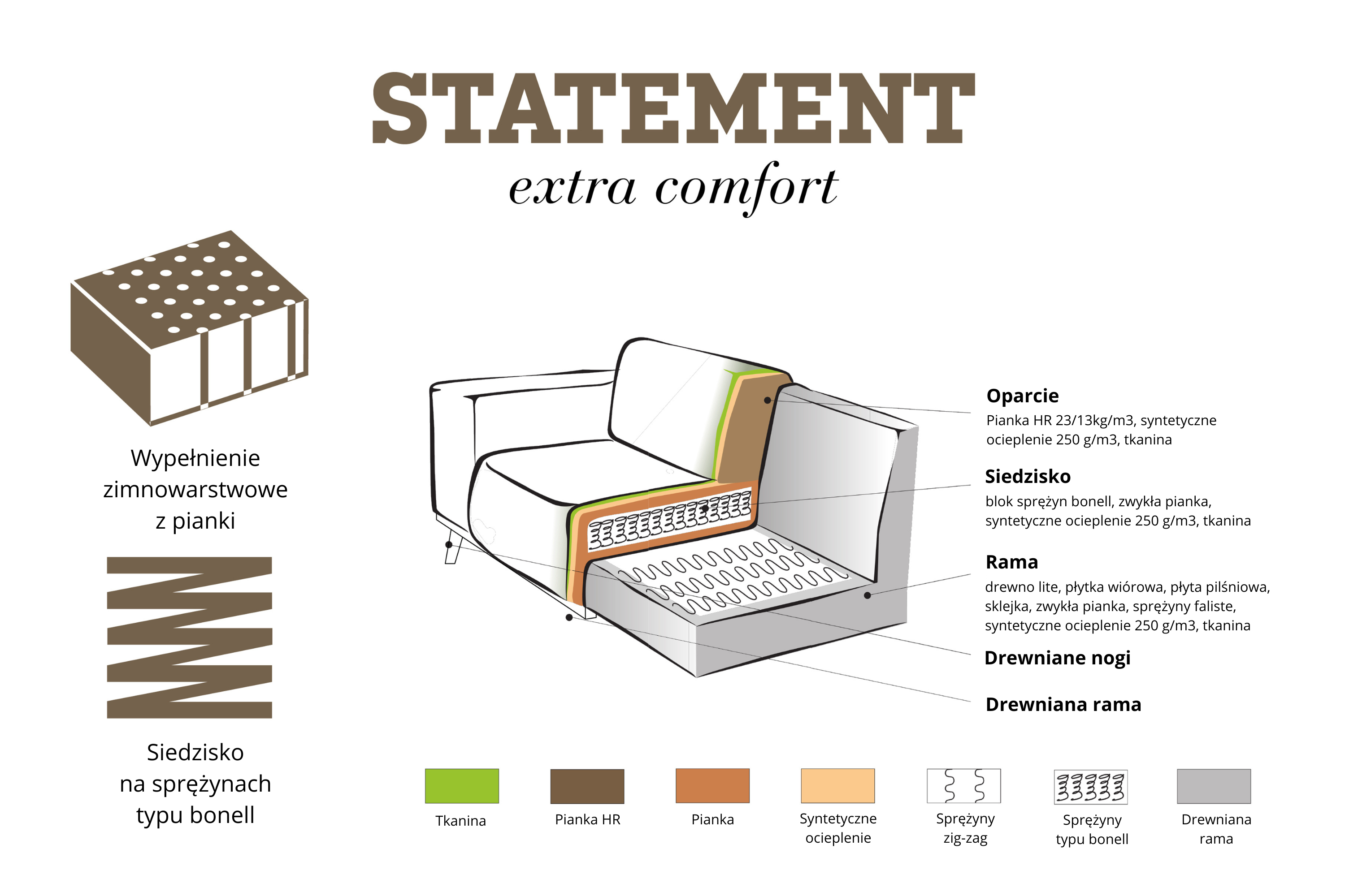 Klasické barvy dodávají tomuto nábytku jedinečný charakter, skvěle se hodí k různým stylům interiérů - od moderních po klasické či industriální. Pohodlné sedadlo a opěradlo zajišťují komfortní podmínky pro relaxaci po náročném dni. Jak pro rodiny, tak pro ty, kteří si cení výjimečného stylu, sedačka Statement představuje vynikající doplněk každého obývacího pokoje či obývacího prostoru.