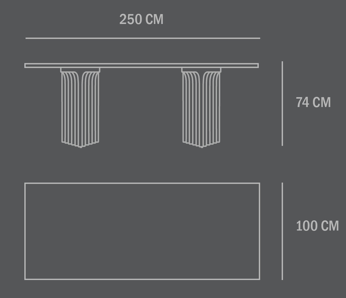Jako oda do okresu Art Deco, stół Arc jest przemianą bogatych detali architektonicznych w kolekcję minimalistycznych mebli. Kolekcja Arc charakteryzuje się stopniami i łukami, tworząc pewną głębię i grę cieni. Stół do jadalni Arc idealnie komponuje się z krzesłami Brutus Dining, tworząc brutalistyczny i architektoniczny wygląd.