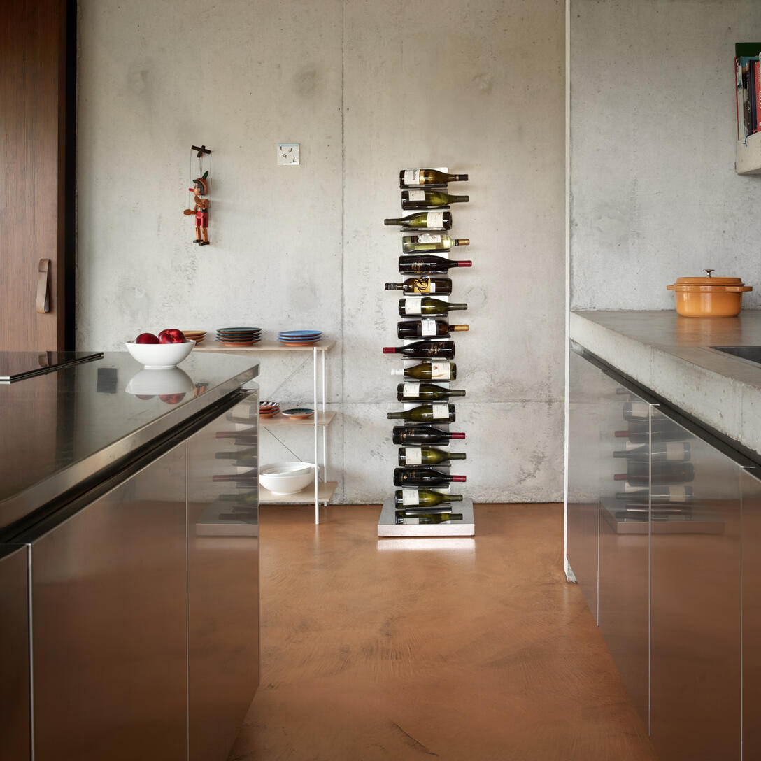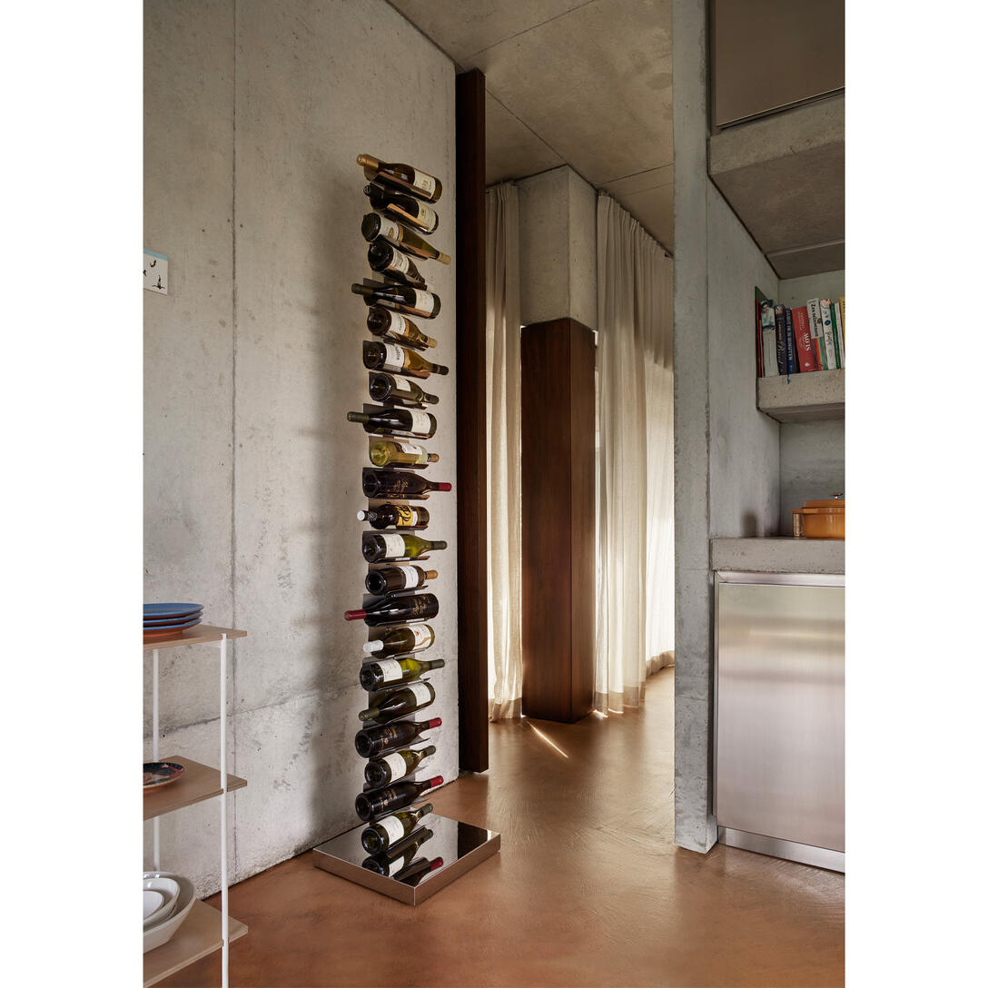 Dostupný ve dvou výškách a různých barevných variantách – včetně matné černé, lesklé bílé, cortenu a nerezové oceli – Ptolomeo Vino se skvěle hodí jak do moderních domácích interiérů, tak do komerčních prostor: restaurací, vináren či hotelových lobby. Protiskluzové elastické pásky zabezpečují každou láhev, podporují její správné skladování a proces zrání.