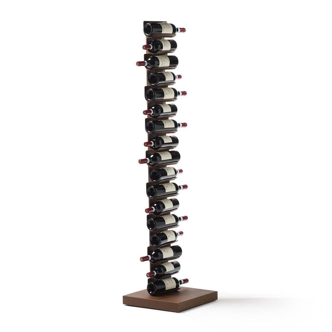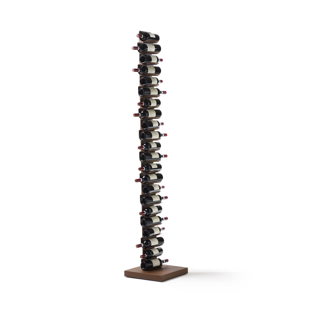 Dostupný ve dvou výškách a různých barevných variantách – včetně matné černé, lesklé bílé, cortenu a nerezové oceli – Ptolomeo Vino se skvěle hodí jak do moderních domácích interiérů, tak do komerčních prostor: restaurací, vináren či hotelových lobby. Protiskluzové elastické pásky zabezpečují každou láhev, podporují její správné skladování a proces zrání.