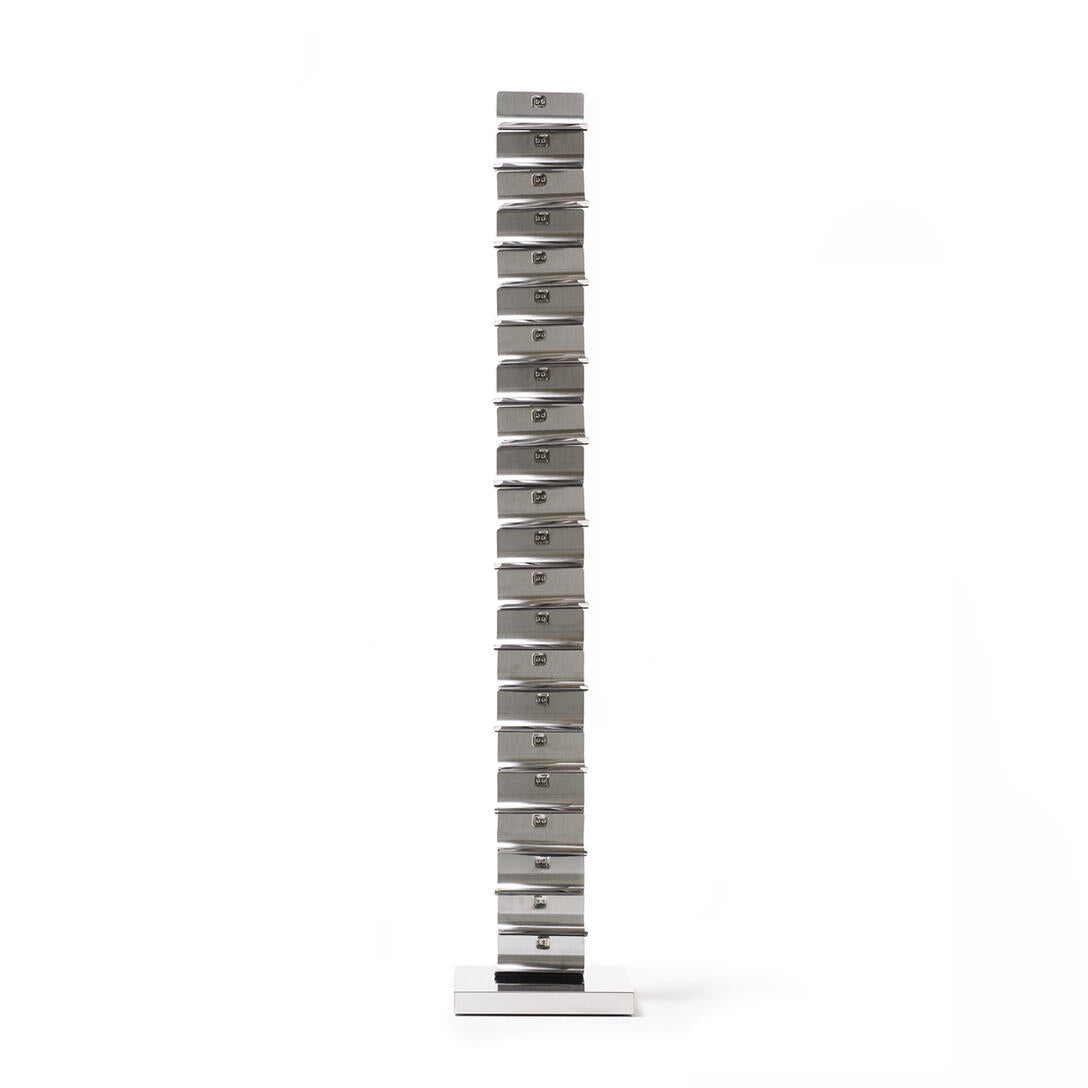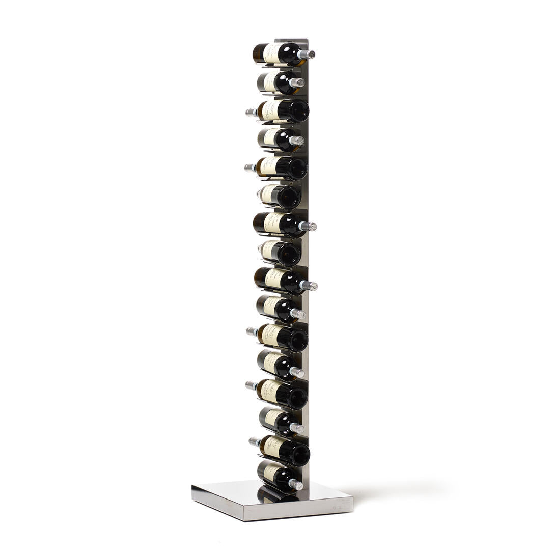 Dostupný ve dvou výškách a různých barevných variantách – včetně matné černé, lesklé bílé, cortenu a nerezové oceli – Ptolomeo Vino se skvěle hodí jak do moderních domácích interiérů, tak do komerčních prostor: restaurací, vináren či hotelových lobby. Protiskluzové elastické pásky zabezpečují každou láhev, podporují její správné skladování a proces zrání.