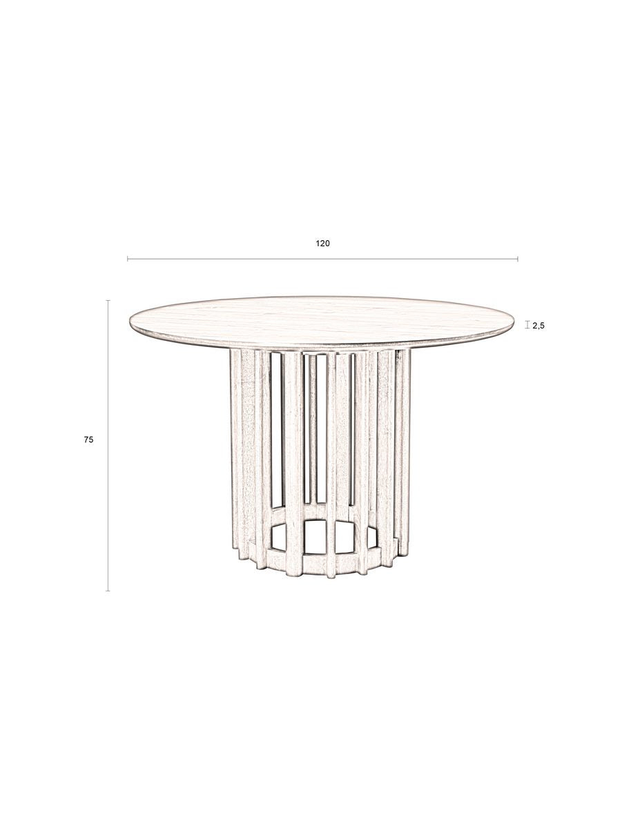 Stůl Barlet se vyznačuje nejen vynikajícím zpracováním, ale také atraktivním designem. Jeho kulatý stůl o průměru 120 cm vytváří harmonický prostor, který podporuje volnou komunikaci a blízké vztahy během jídla. Minimalistický design tohoto stolu se skvěle hodí k různým aranžmá interiérů, od klasického po moderní styl, dodávající jim jemný, designový akcent.