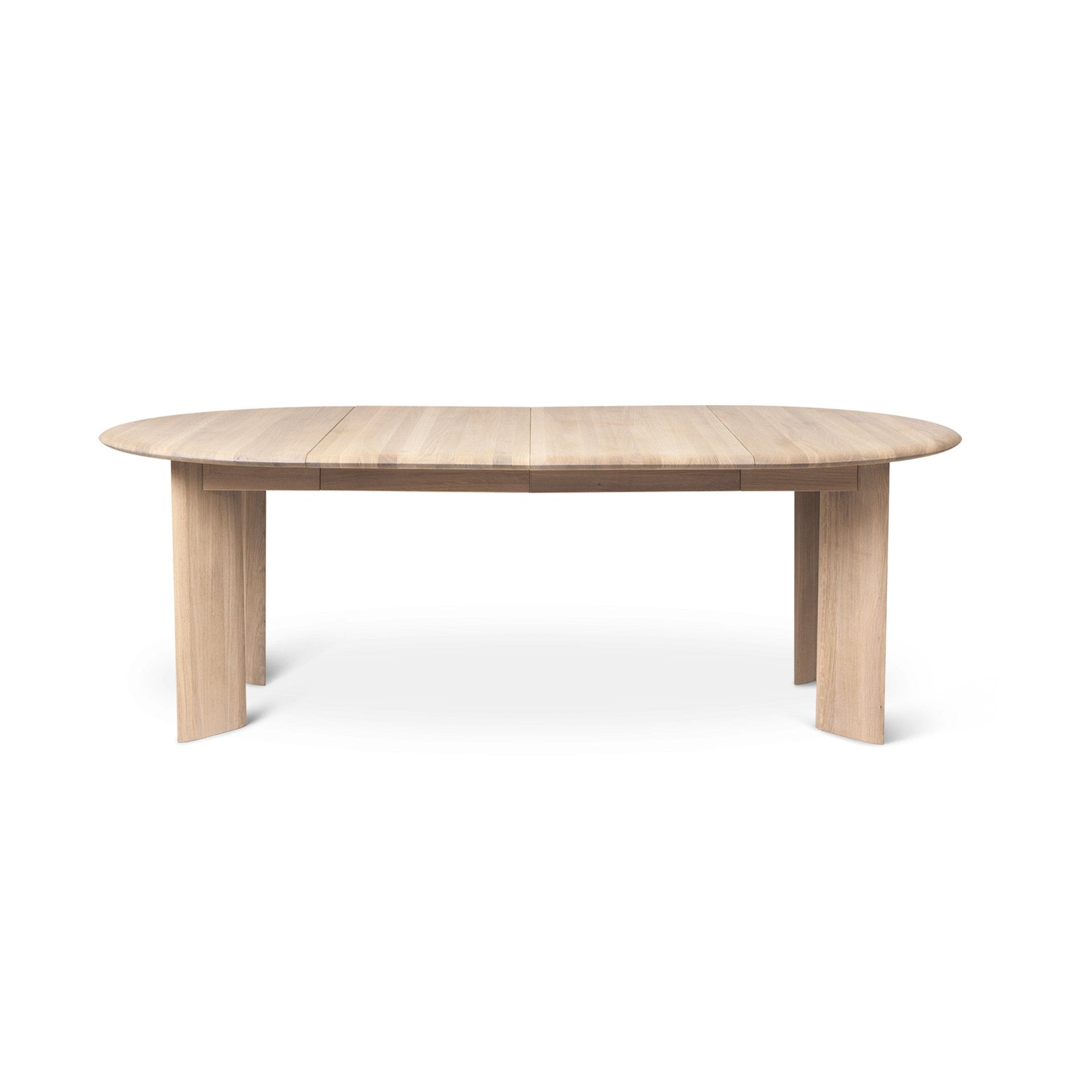 Stůl Bevel, vyrobený výhradně z masivního dubového dřeva s certifikací FSC™, spojuje klasický design s moderním akcentem díky širokým, vyřezávaným nohám. Dostupný v přírodním olejovaném nebo černém olejovaném provedení, stůl je vybaven dalším víkem, které umožňuje jeho rozložení a pohodlné přijetí většího počtu hostů. Jak deska, tak nohy mají jemně zaoblené hrany, což dodává celku měkký výraz.