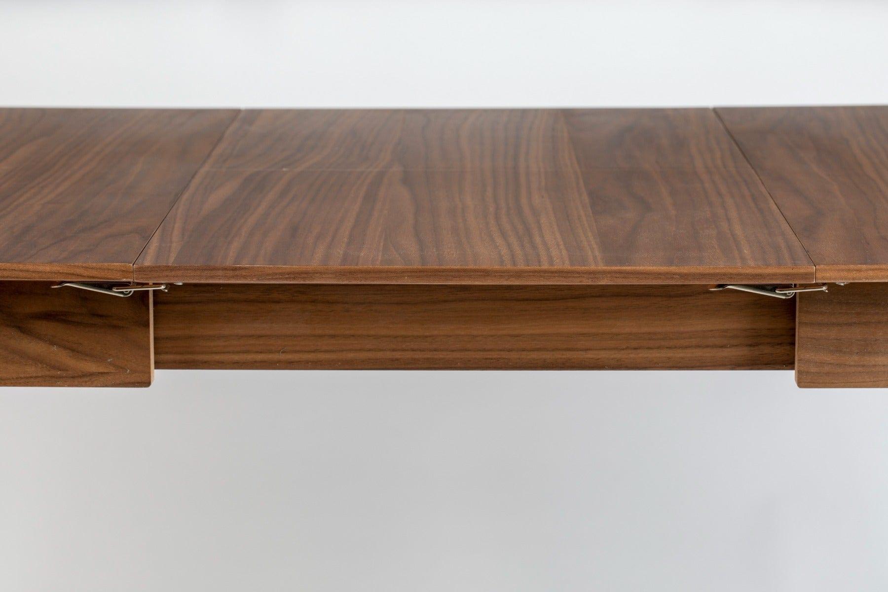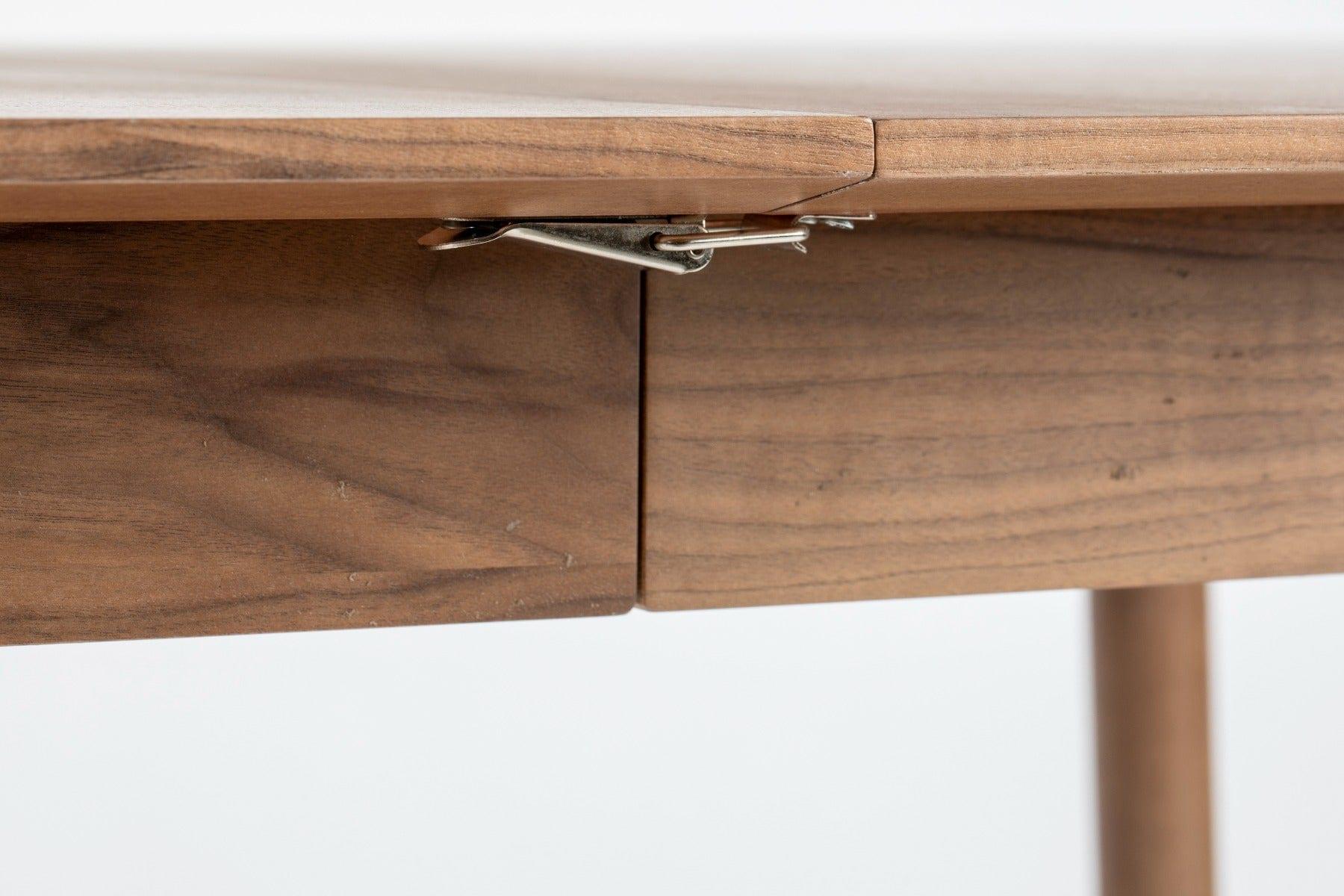 Ořechový stůl Glimps je skvělým řešením pro každé bydlení, kde během každodenních jídel není potřeba příliš mnoho místa, ale občas nastanou situace, kdy je to nezbytné. Toho lze snadno dosáhnout díky možnosti rozložení.