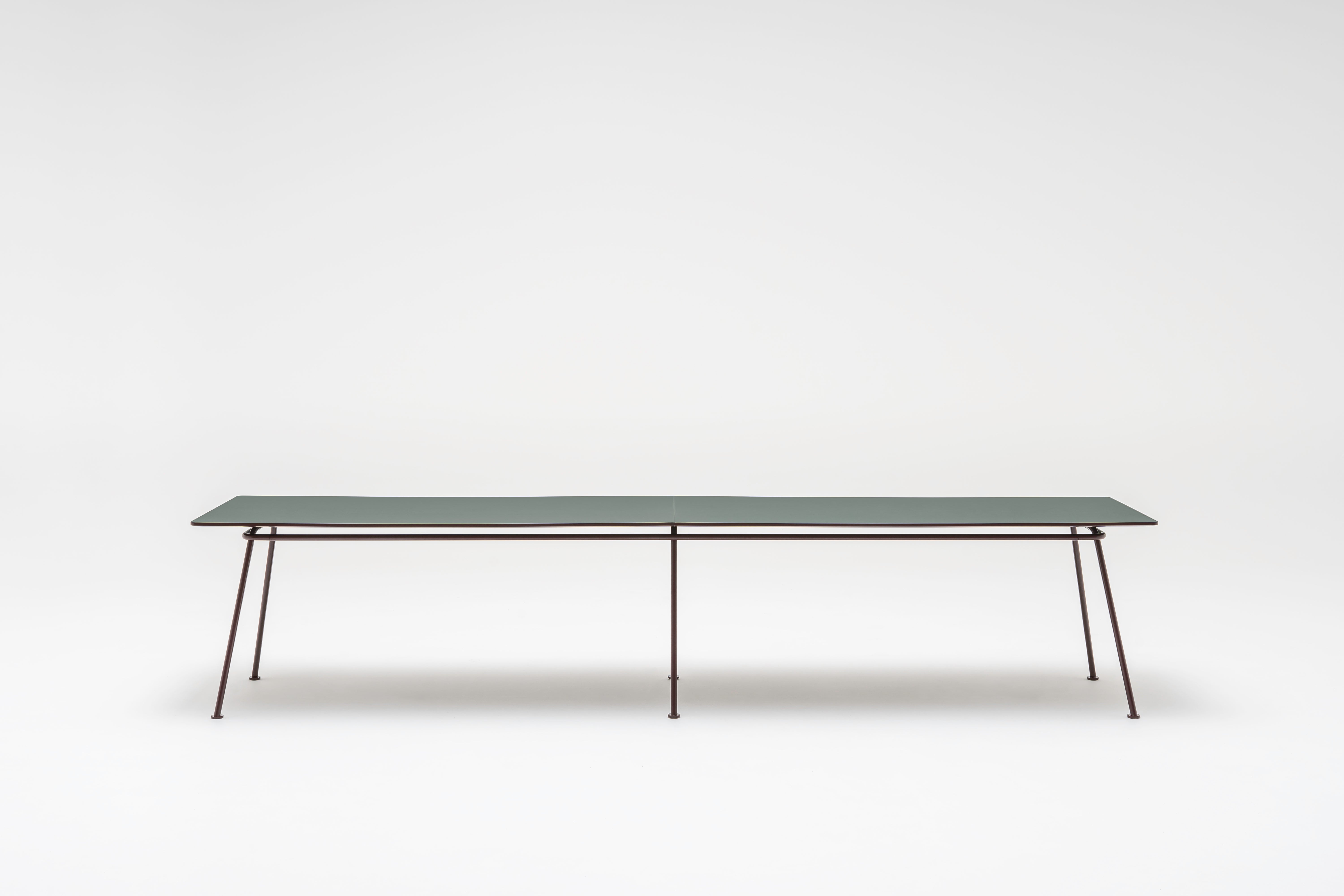 Deska pokrytá laminátem je odolná vůči otiskům prstů a snadno se čistí, což zvyšuje praktičnost stolu na místech s intenzivním používáním. Lehká, stabilní konstrukce z práškově lakovaných kovových trubek zaručuje trvanlivost a snadnou údržbu. V nabídce jsou k dispozici různé rozměry a tvary desek, a pečlivě vybraný sortiment barev umožňuje individuální přizpůsobení interiéru.