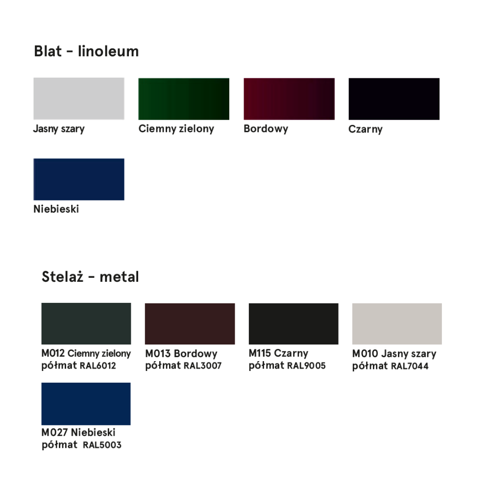 Deska pokrytá laminátem je odolná proti otiskům prstů a snadno se čistí, což zvyšuje praktičnost stolu na místech s intenzivním používáním. Lehká, stabilní konstrukce z práškově lakovaných kovových trubek zaručuje trvanlivost a snadnou údržbu. V nabídce jsou k dispozici různé rozměry a tvary desek, a pečlivě vybraný sortiment barev umožňuje individuální přizpůsobení interiéru.
