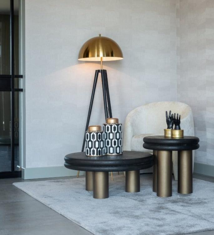 Jídelní stůl Macaron je jedinečný nábytek, který spojuje jemný lesk kovu s přirozeným teplem dřeva. Kovová konstrukce v odstínu patinované mosazi vnáší do interiéru výjimečný charakter a vzhled. Dubová deska dodává stolku přirozené kouzlo a krásu.